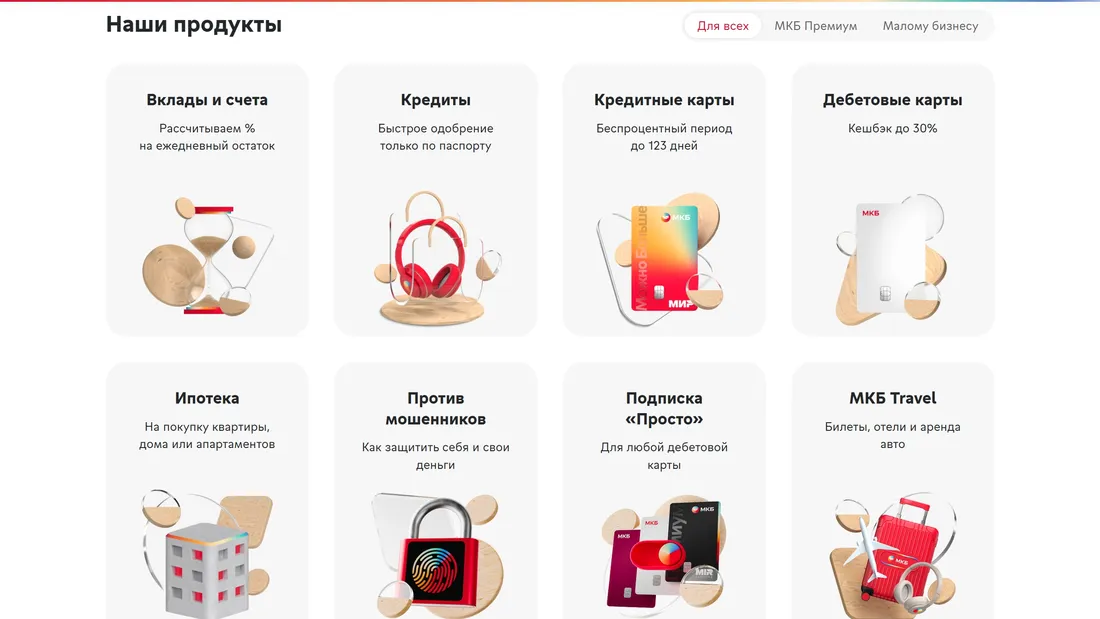 МКБ — Современный банк с высоким уровнем клиентского сервиса. Карты с кешбэком, вклады, кредиты, ипотека и ведение счетов.