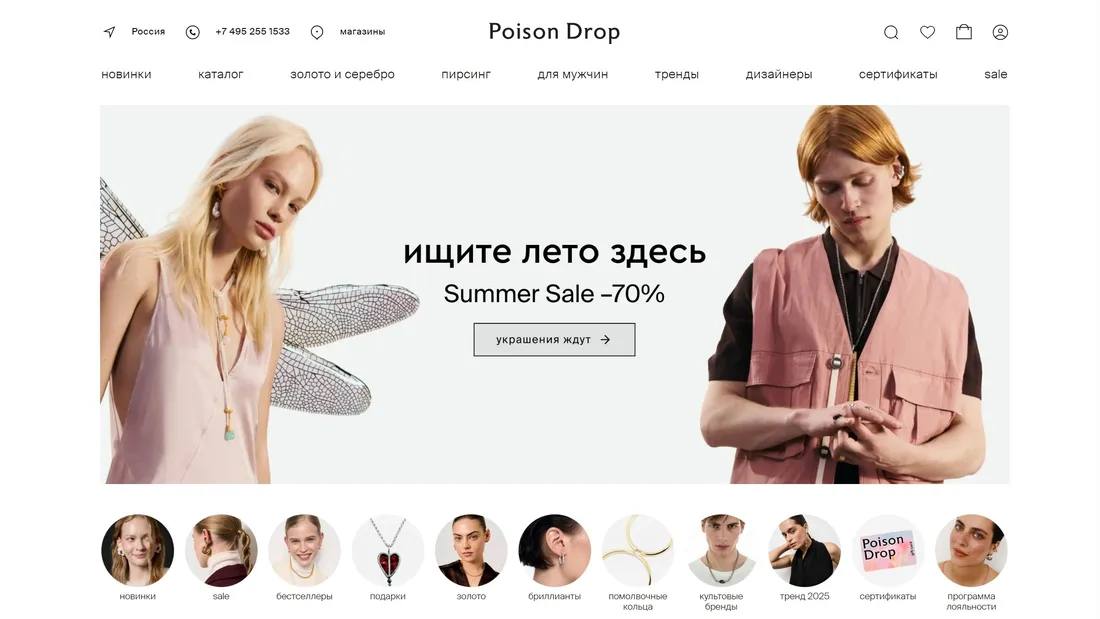Poison Drop — онлайн-платформа, представляющая коллекции стильных украшений от независимых дизайнеров и брендов, объединяя моду, тренды и самовыражение.