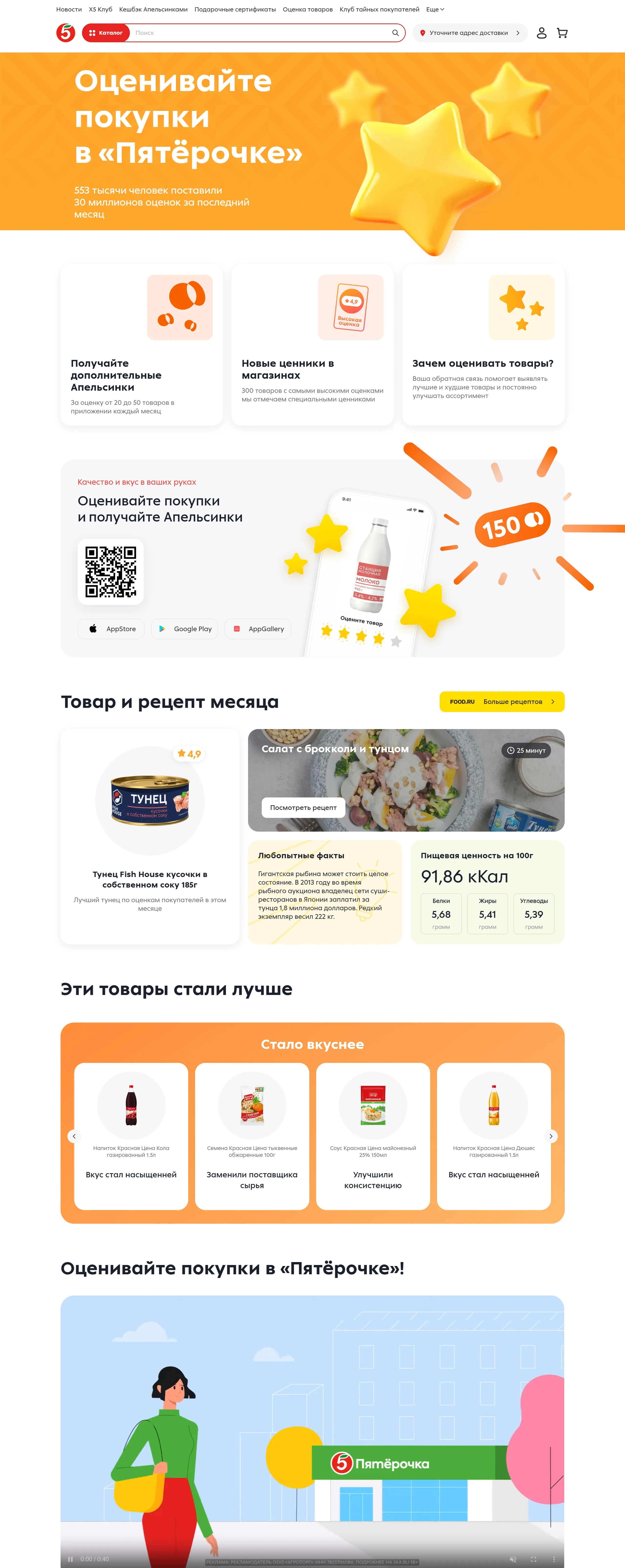 Главная Пятёрочка, тематика — Интернет-магазин, цвета — Белый, стиль — Корпоративный, типографика — Без засечек