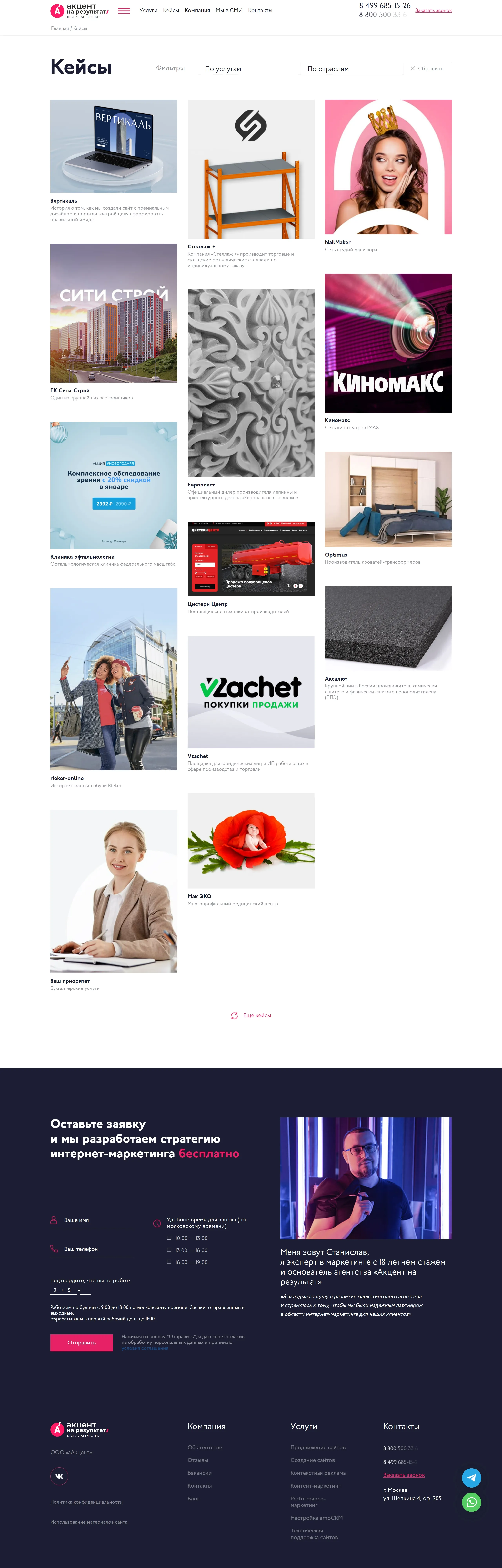 Это маркетинговое агентство полного цикла, предоставляющее услуги интернет-маркетинга в Москве и предлагающее решения "под ключ" для бизнеса.