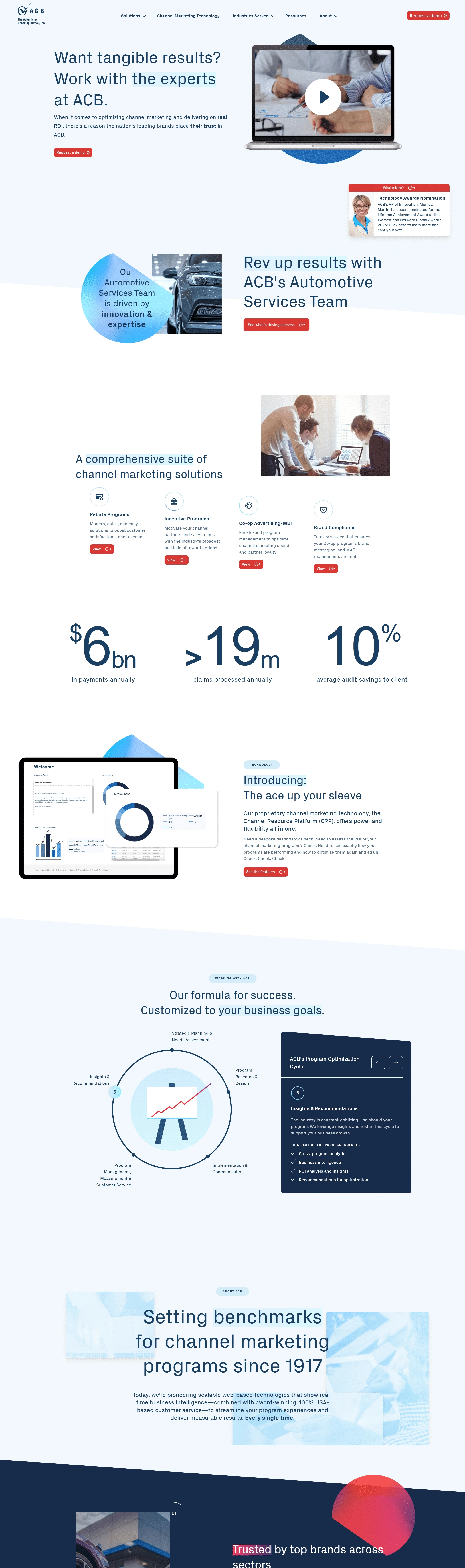 ACB offers expert Rebate, SPIFF, Co-op Advertising and Brand Compliance solutions to optimize channel marketing and incentives strategy for businesses.
