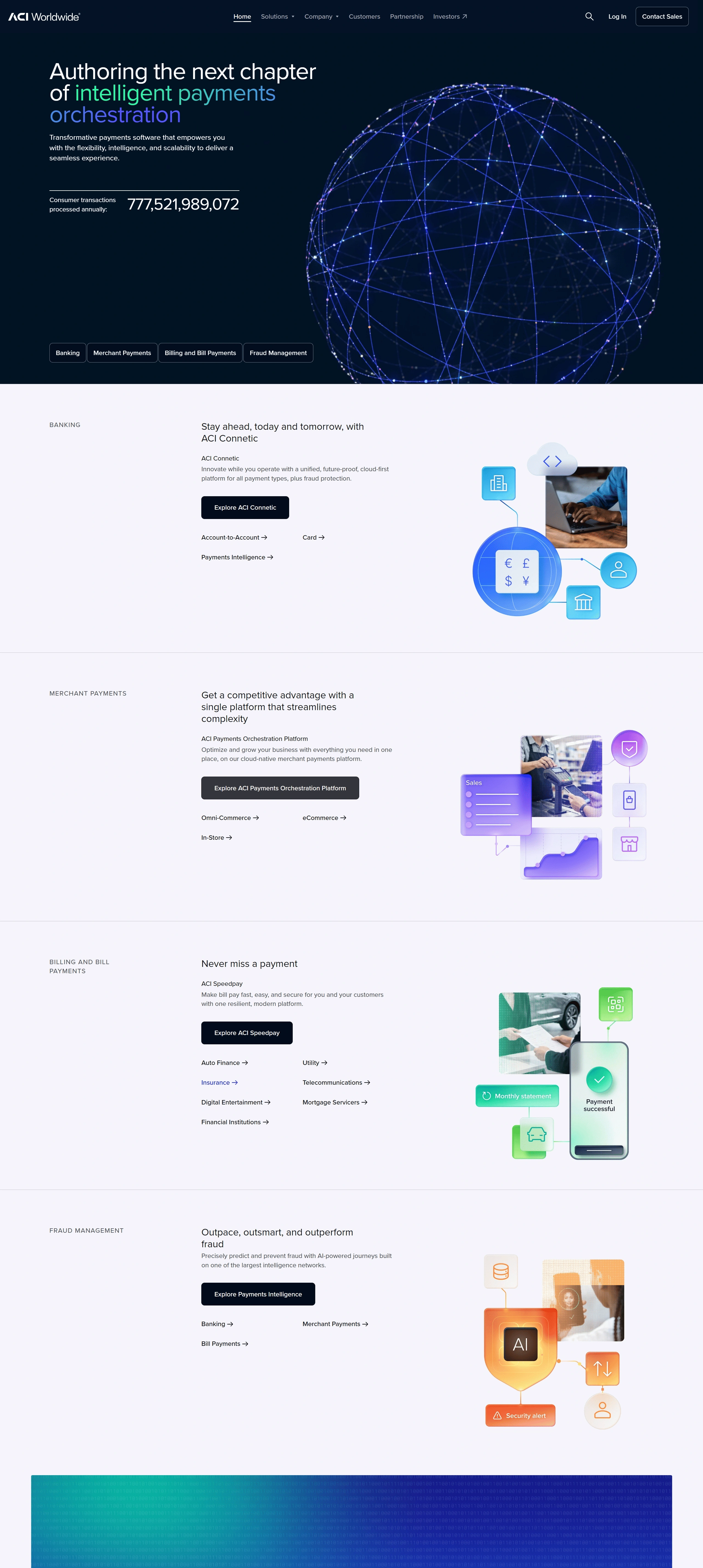 An original innovator in global payments technology, ACI delivers transformative software solutions that power intelligent payments orchestration in real time.