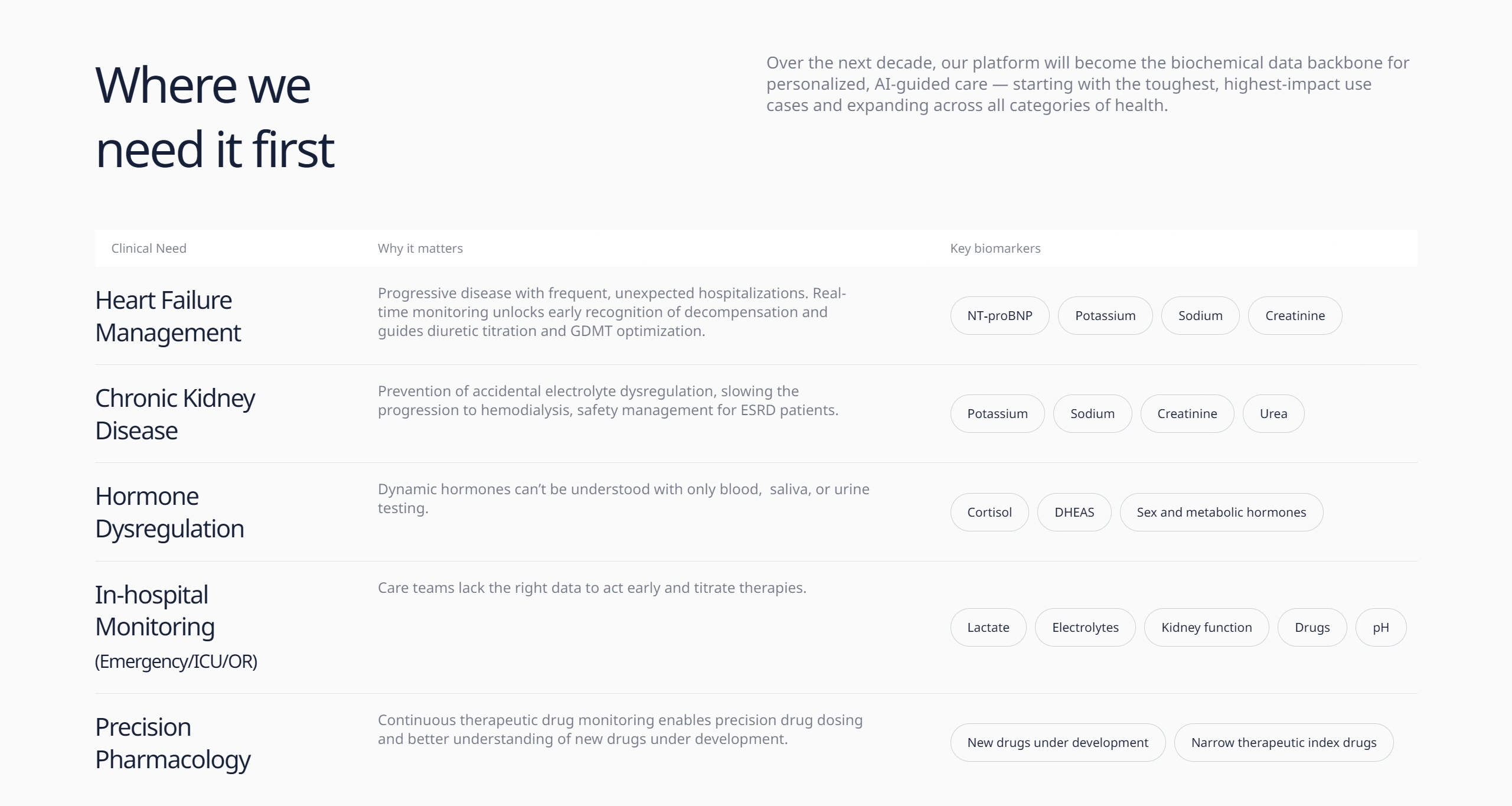 Компания предлагает решения для непрерывного мониторинга здоровья и биомаркеров, обеспечивая интеллектуальный медицинский уход с использованием данных о состоянии организма. Adaptyx превращает лабораторные биохимические анализы в постоянный поток данных для поддержания здоровья между визитами к врачу.