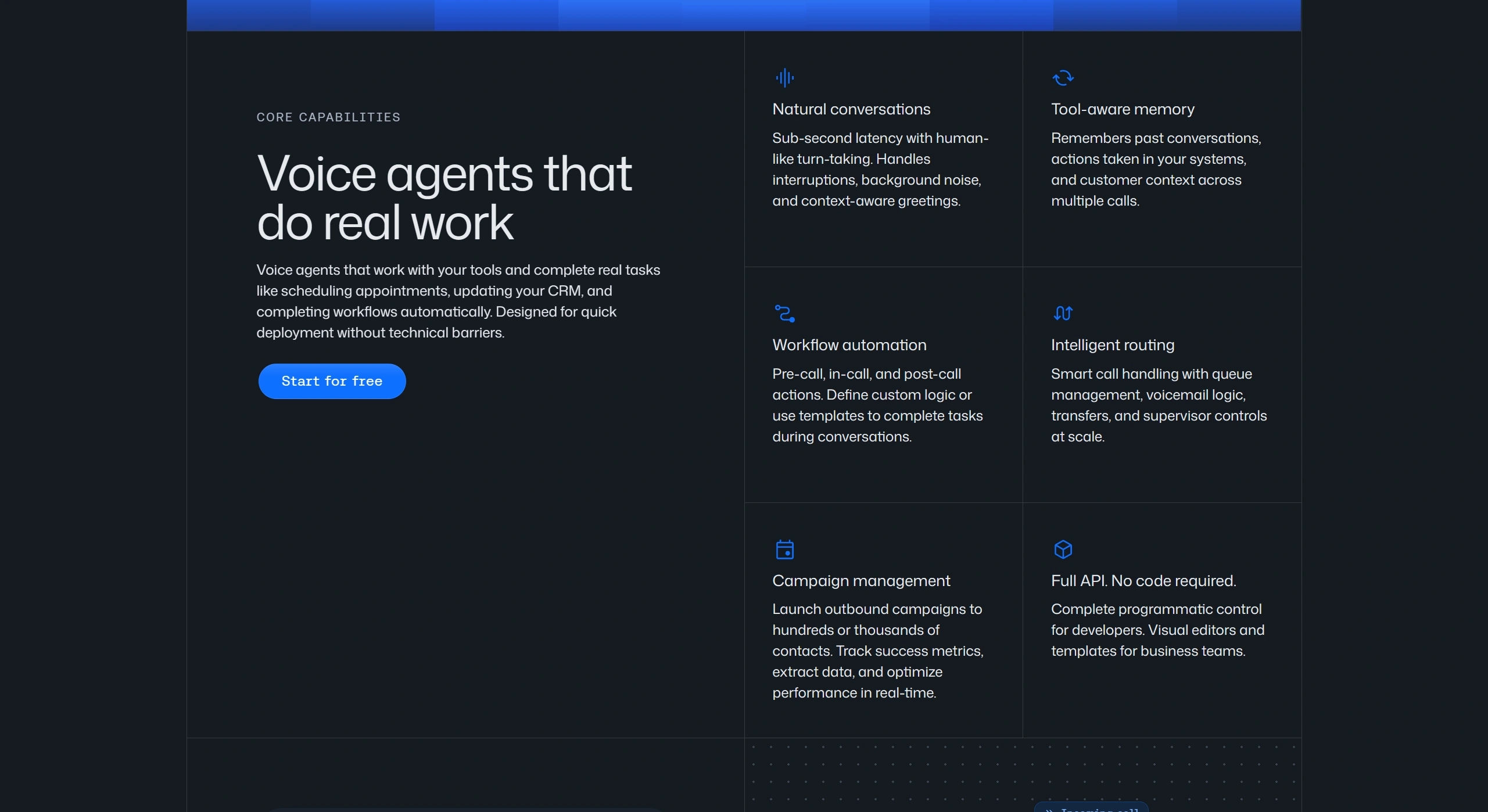 Платформа AI-агентов для голосовых звонков, которая автоматизирует задачи, такие как планирование встреч и обновление CRM, без человеческого вмешательства.