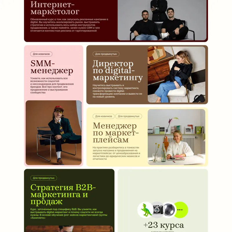 Учебное заведение предлагает курсы по интернет-маркетингу и рекламе, помогая студентам выбрать и освоить востребованные профессии в digital-индустрии.