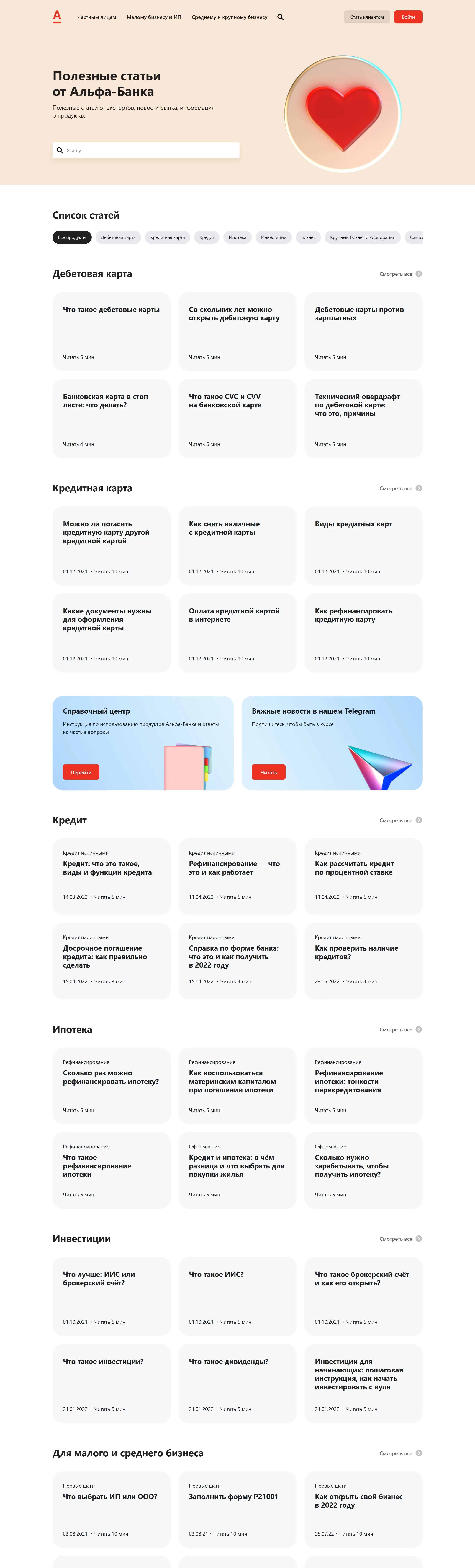 База знаний Альфа-Банк, тематика — Финансы, цвета — Белый, стиль — Корпоративный, типографика — Без засечек