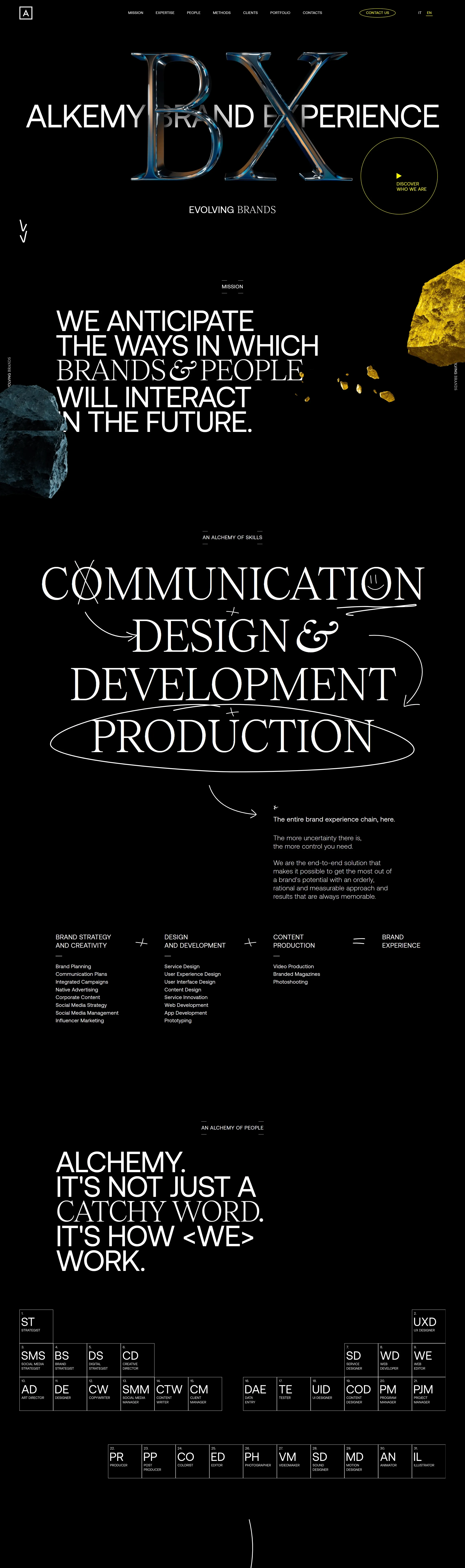 Alkemy’s Brand Experience предлагает интегрированные коммуникационные решения для развивающихся компаний, сочетая различные навыки для оптимизации взаимодействия между брендами и потребителями.