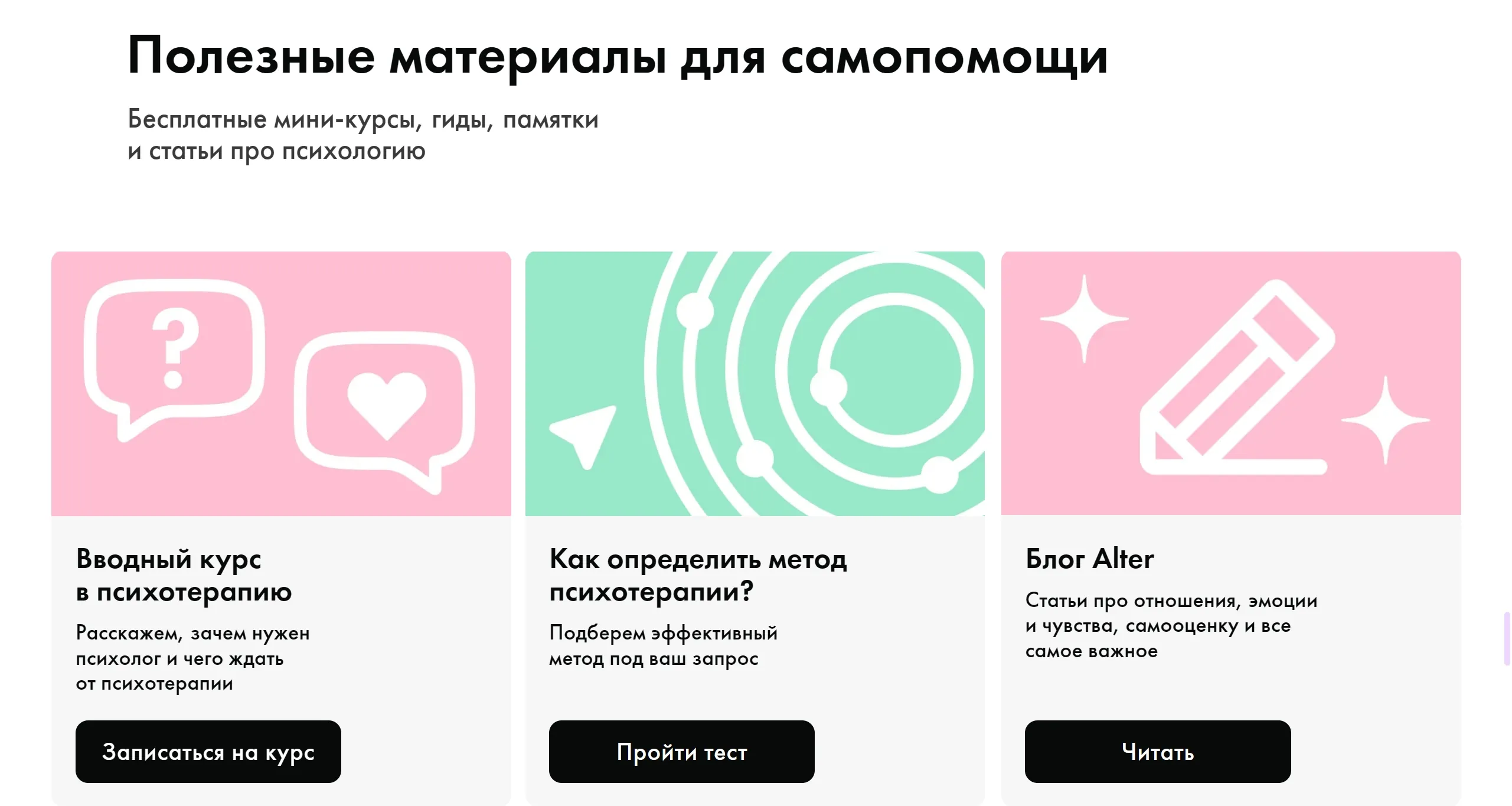 Сервис онлайн подбора психологов и психотерапевтов, предлагающий консультации с проверенными специалистами и обеспечивающий анонимность приема. С 2017 года проведено более 615 000 сеансов, и клиентская оценка качества терапии составляет 9 из 10.