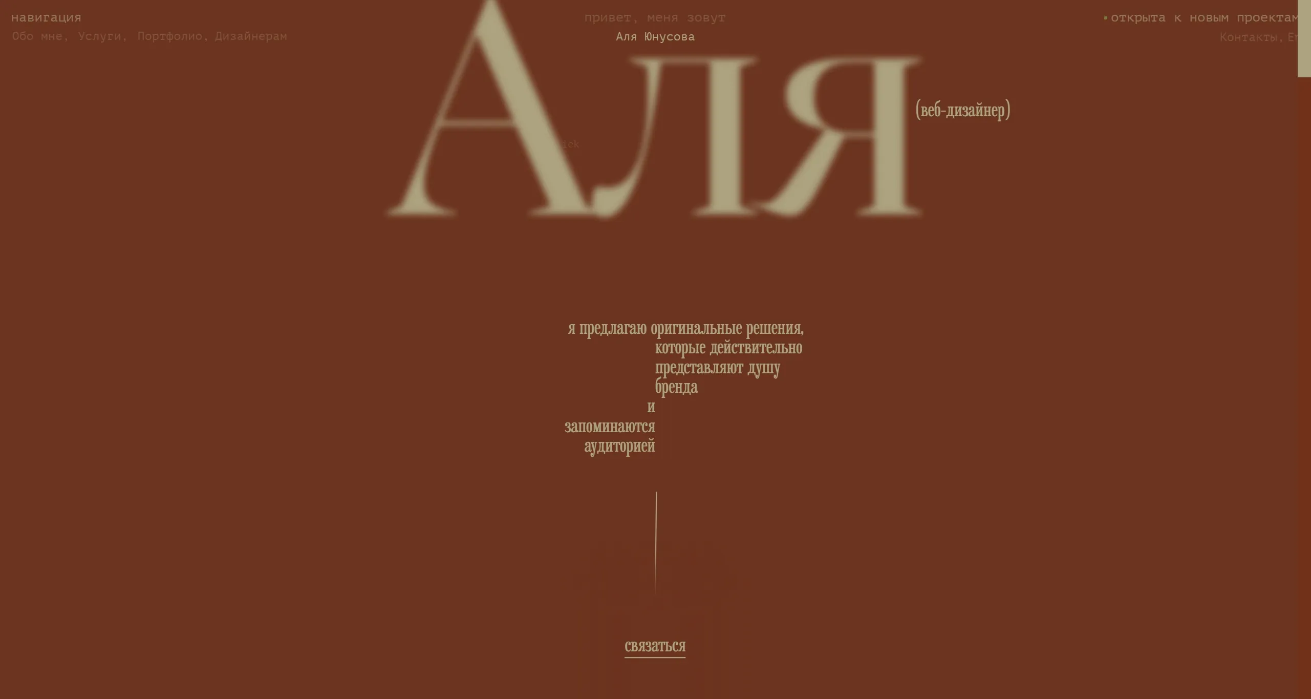 Аля Юнусова — веб-дизайнер, стремящийся создать уникальные сайты, которые вызывают эмоции и отвечают запросам клиентов. Она отказывается от шаблонных решений, предлагая индивидуальный подход к каждому проекту.