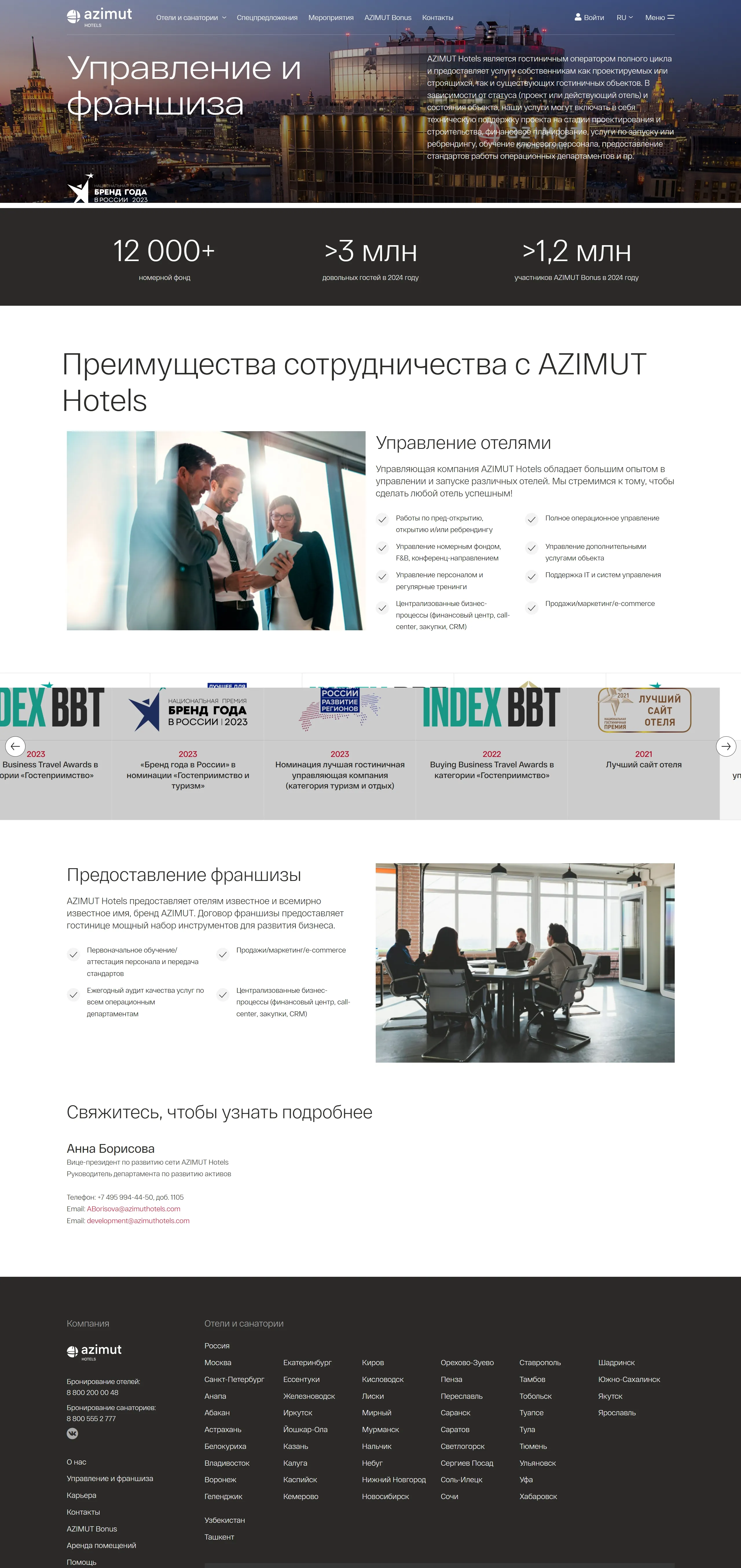 Крупнейшая российская сеть отелей с широкой географией присутствия, предлагающая гарантированно лучшие цены при бронировании на официальном сайте.