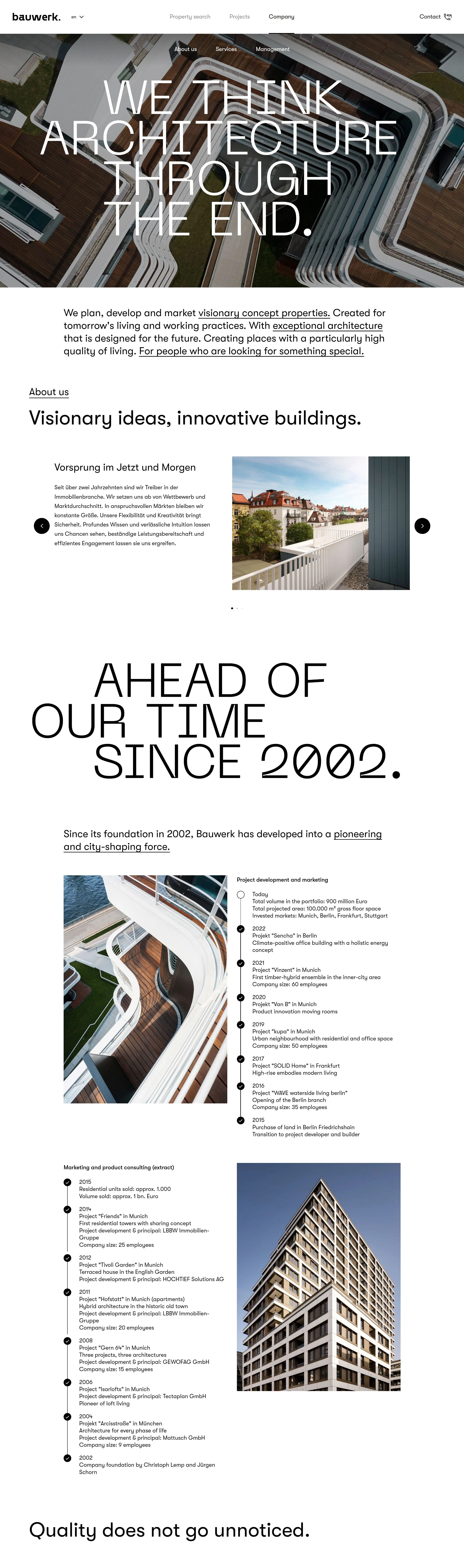 Компания является девелопером проектов в области визионерской недвижимости, специализируясь на создании уникальных объектов в Мюнхене, Берлине и Франкфурте. Она фокусируется на архитектуре, рассчитанной на будущее и обеспечивающей высокий уровень качества жизни.