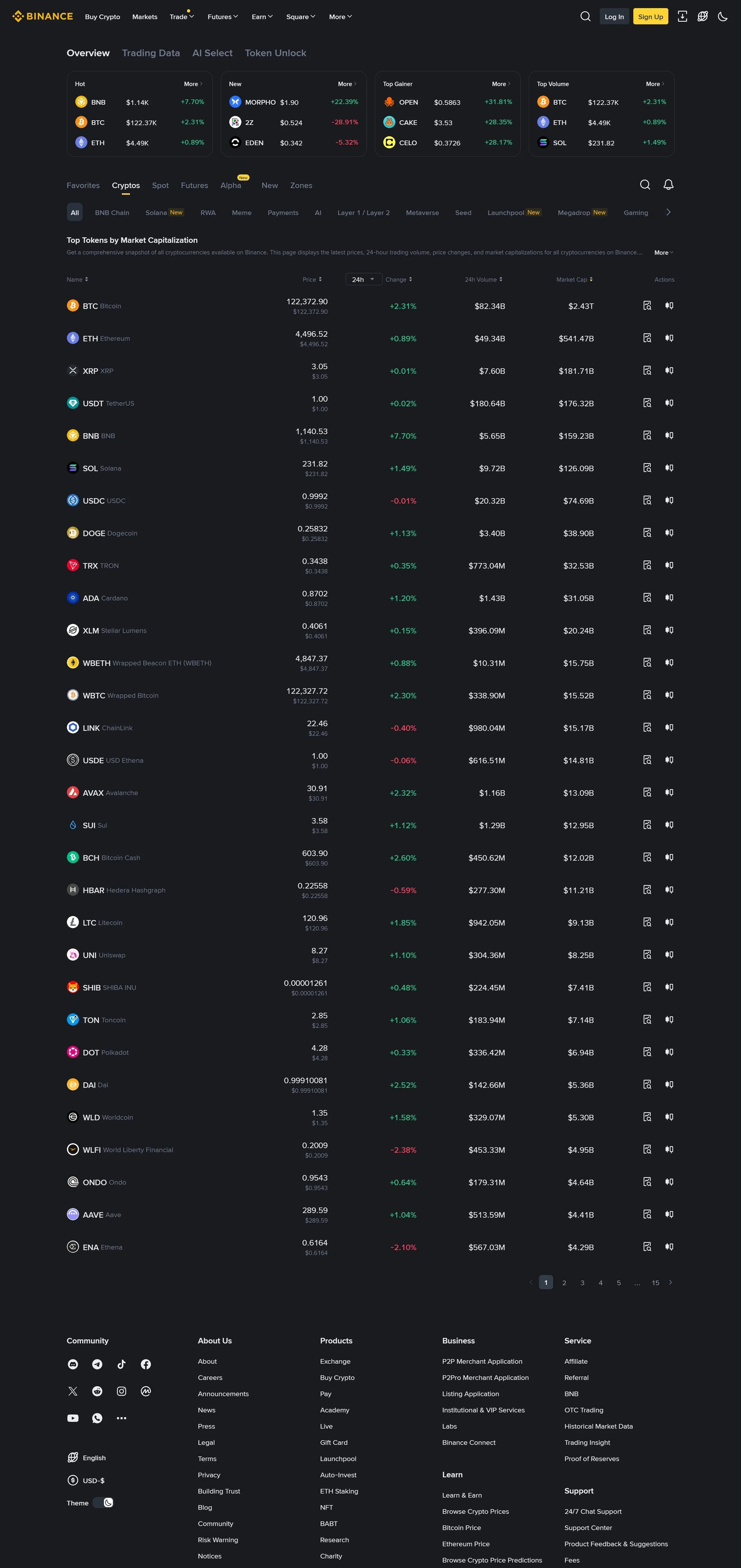 Каталог binance, тематика — Крипто  и блокчейн, цвета — Черный, стиль — Корпоративный, типографика — Без засечек