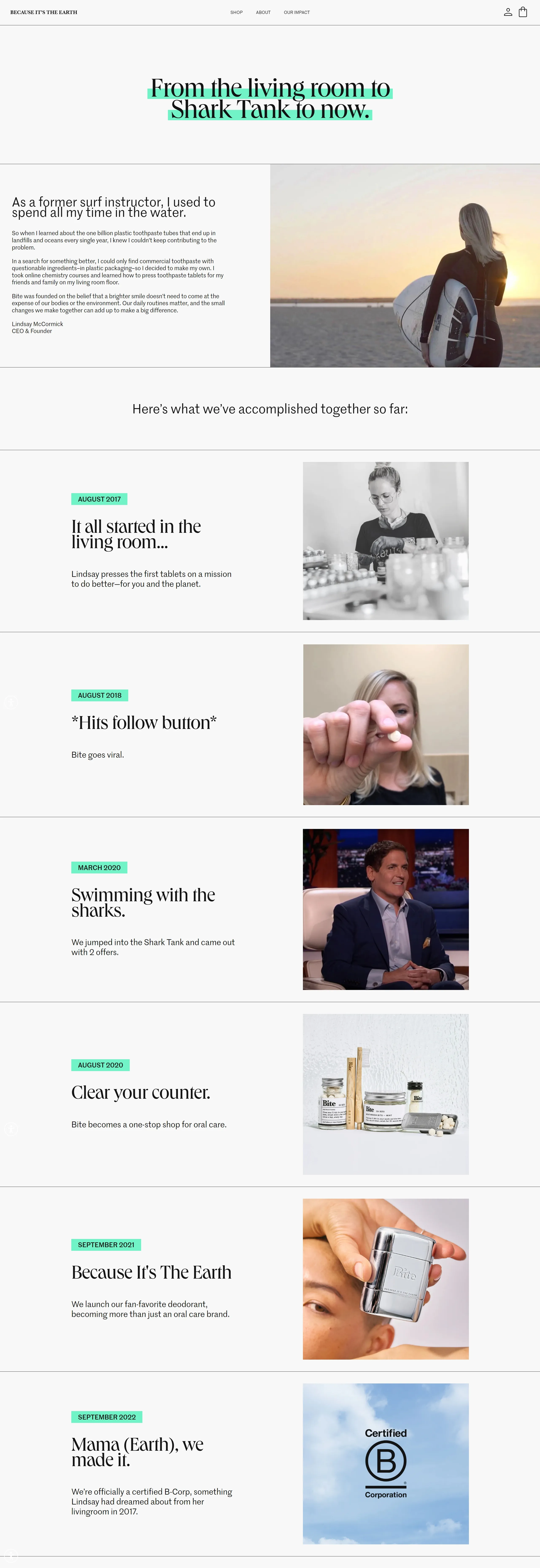 Компания предлагает экологически чистые таблетки для чистки зубов, которые упакованы в перерабатываемые стеклянные контейнеры и не содержат пластика и жестких химикатов. Продукция включает как фторсодержащие, так и фторне содержащие варианты зубной пасты и получает положительные отзывы от клиентов.