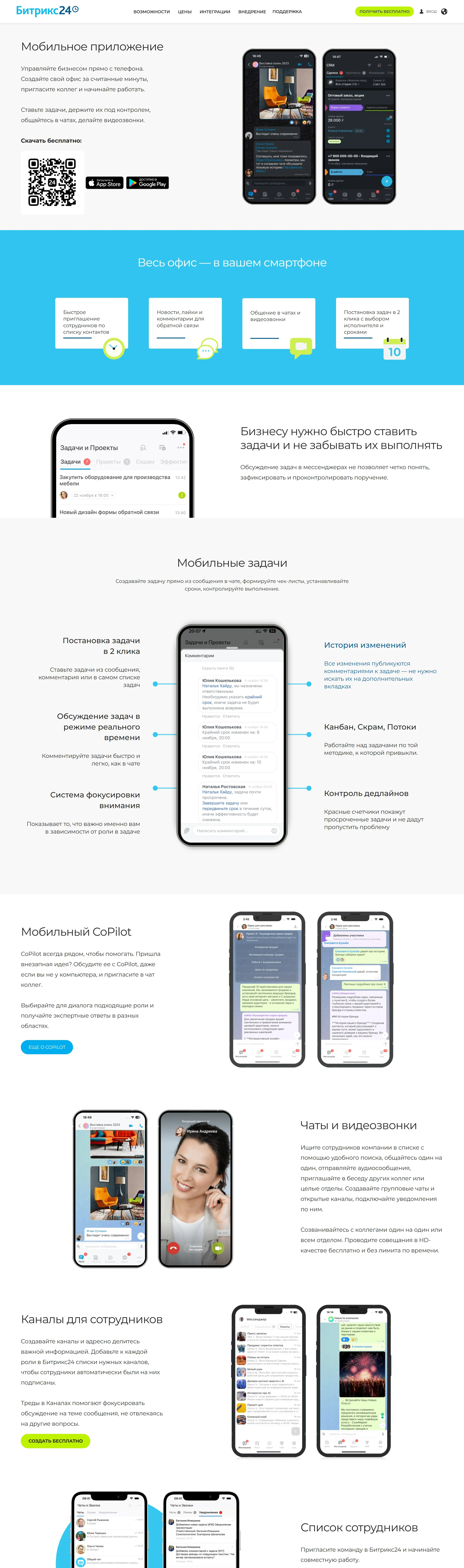 Продукт Битрикс24, тематика — IT и программное обеспечение, Мобильное приложение, цвета — Белый, стиль — Корпоративный, типографика — Без засечек