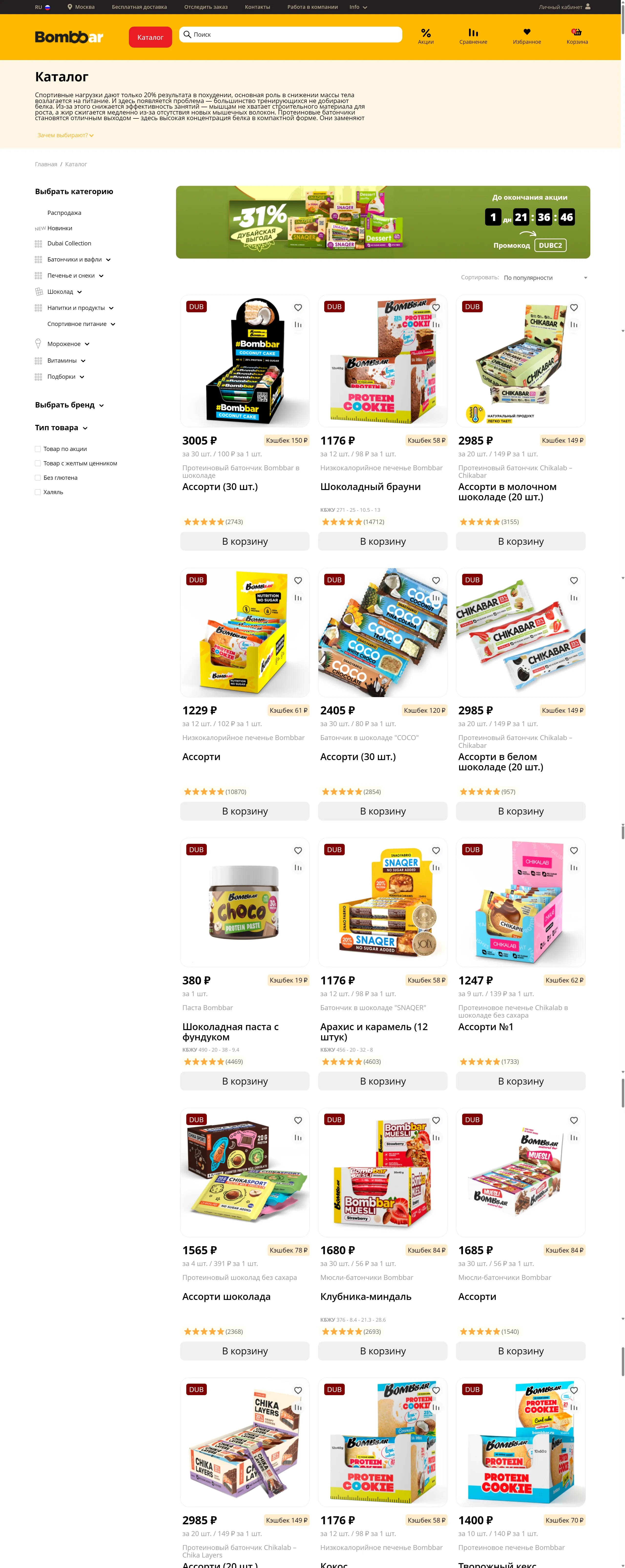 Официальный интернет-магазин, предлагающий продукцию Бомббар с бесплатной доставкой по Москве и другим городам России при заказе от 3000 рублей, а также акции и скидки.
