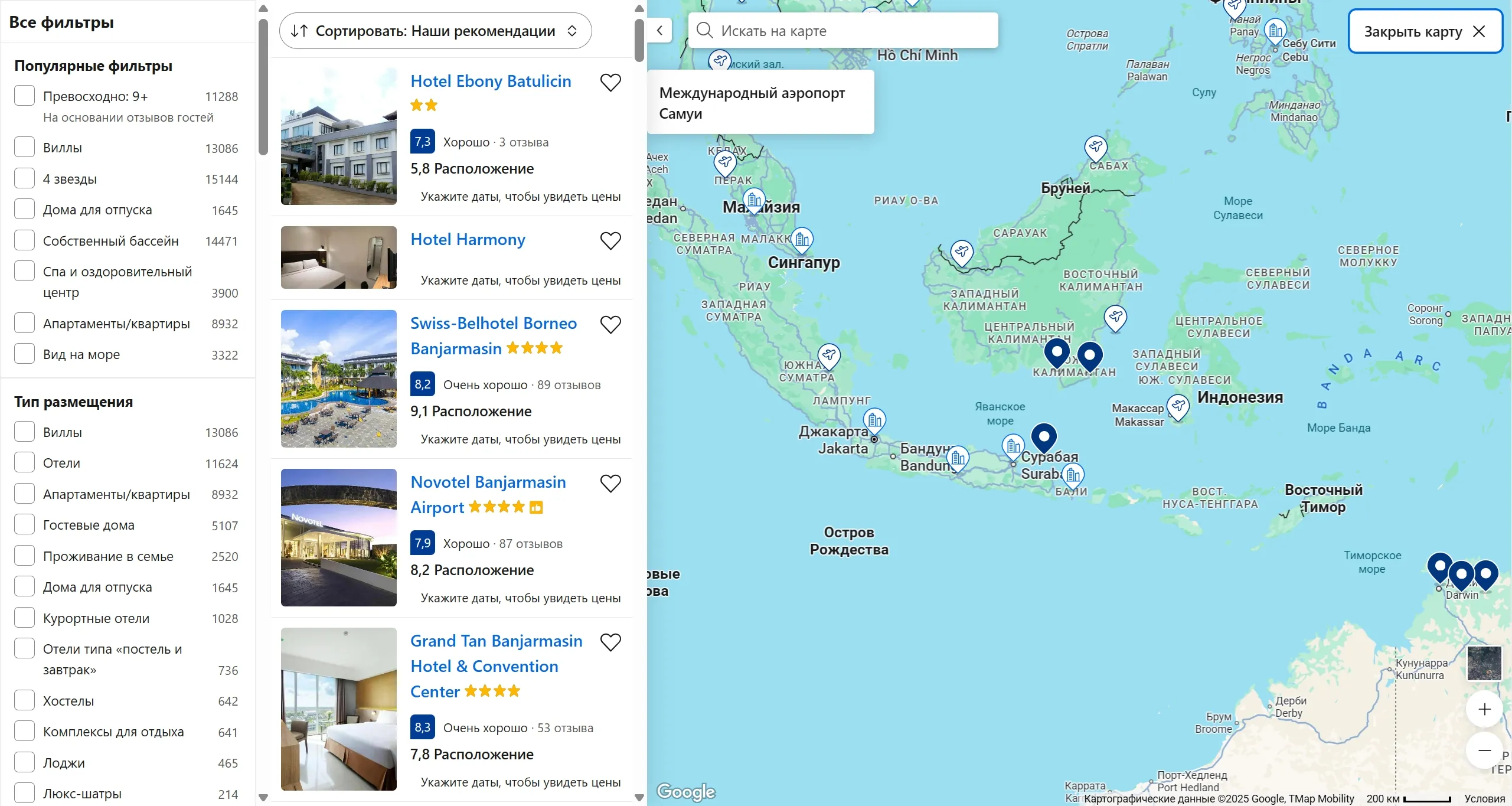 Платформа для бронирования, предлагающая варианты жилья, авиабилеты, аренду автомобилей и такси, а также различные способы организации досуга и путешествий по всему миру.
