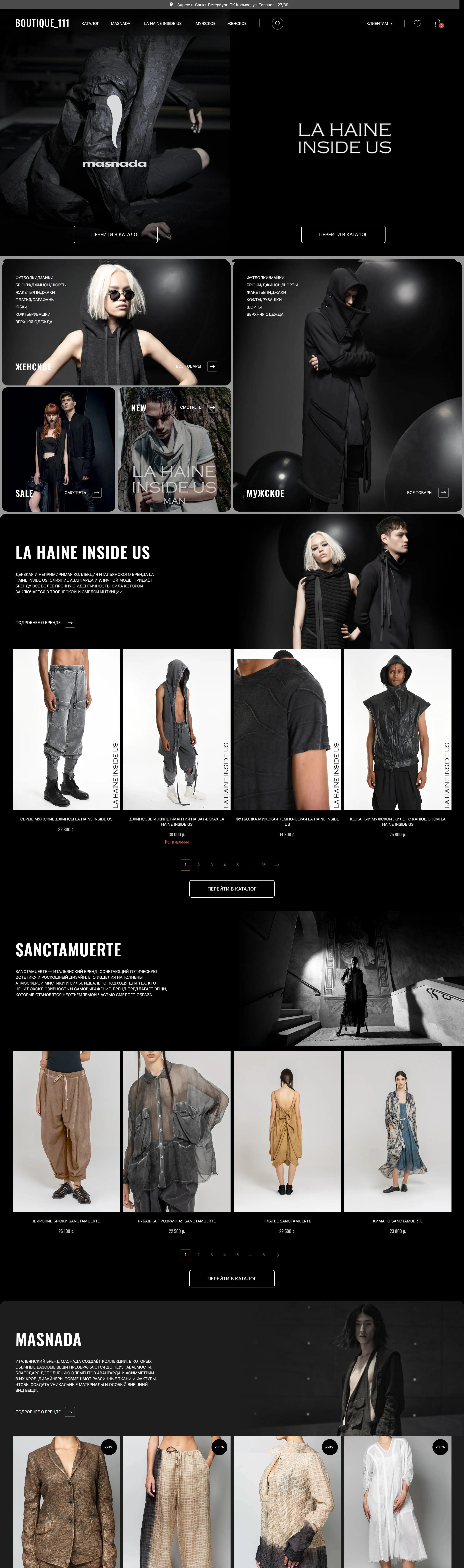 Бутик предлагает уникальную концептуальную одежду от итальянских дизайнеров, таких как LA HAINE INSIDE US и MASNADA, и осуществляет доставку по всей России.