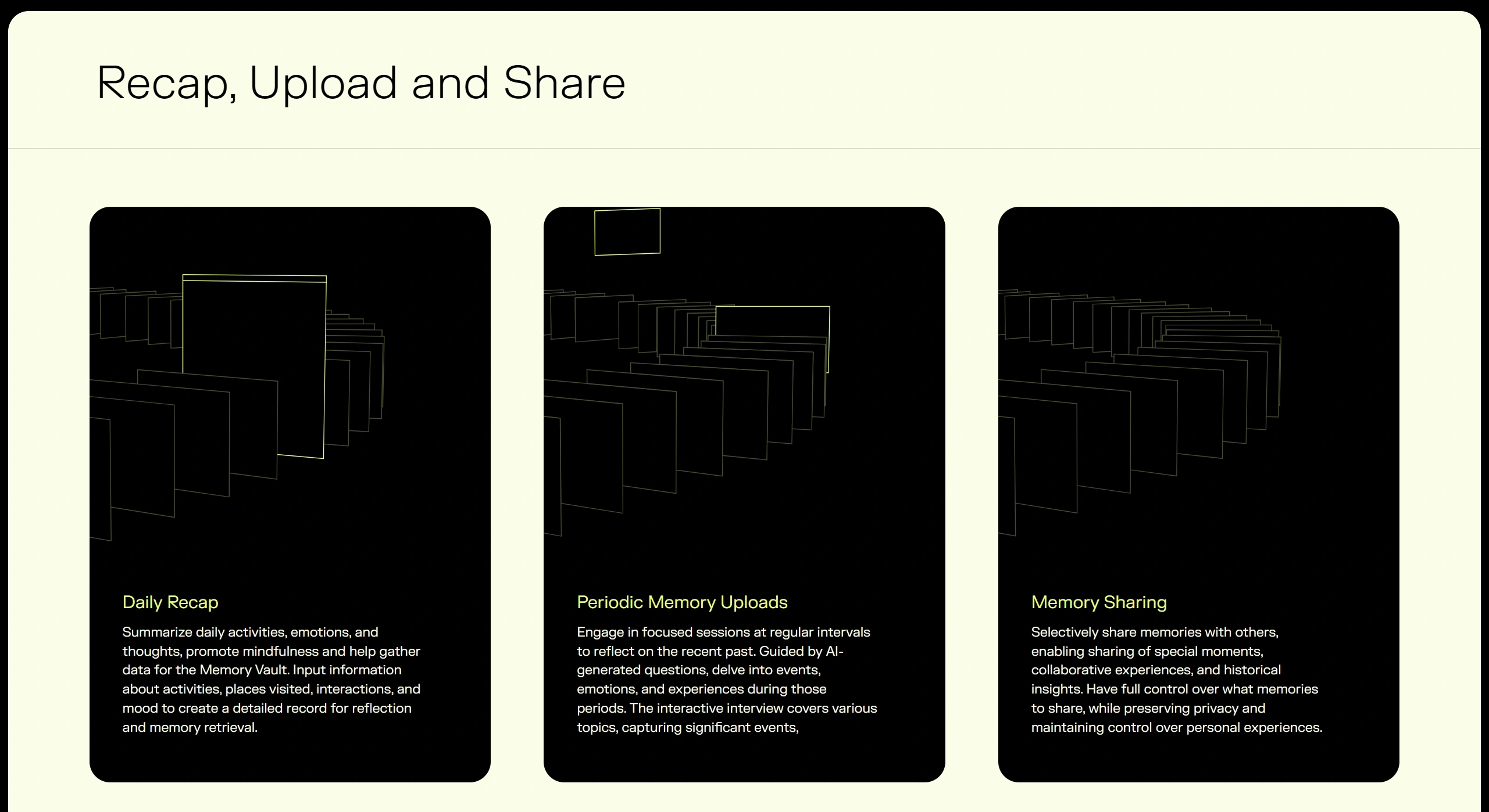 Компания предлагает широкий спектр услуг для захвата, сохранения и взаимодействия с личными воспоминаниями и переживаниями, стремясь революционизировать связь между человеческой когницей и технологиями.