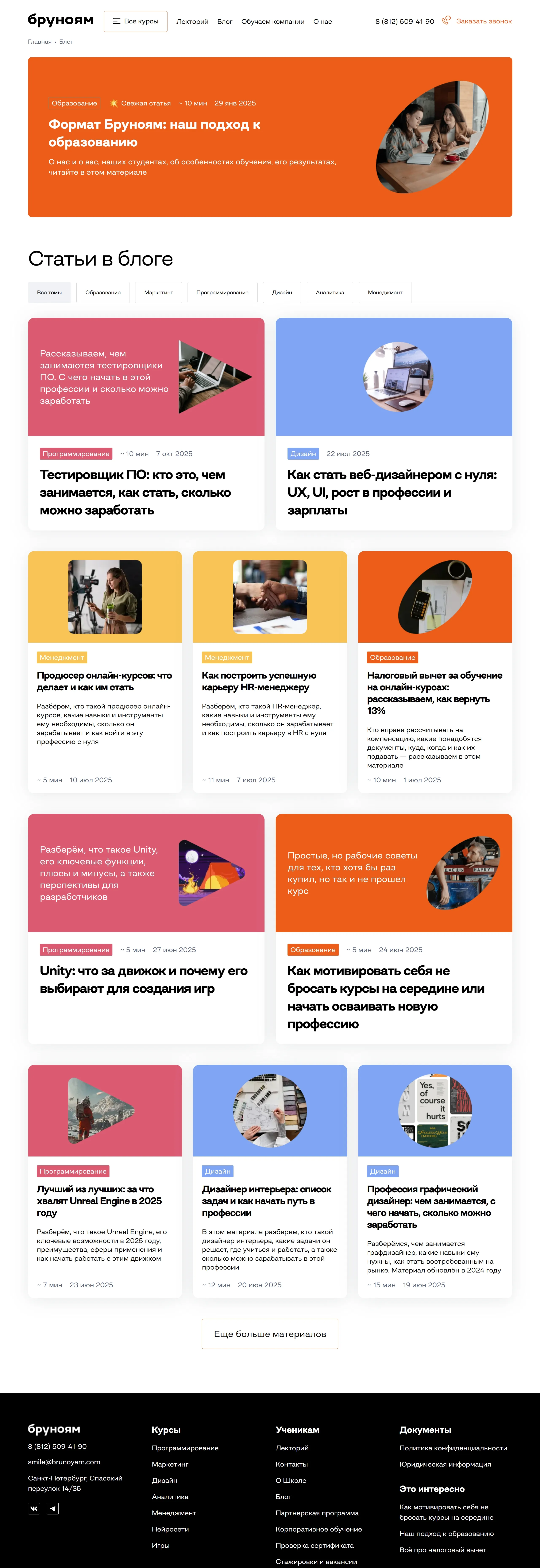 Блог Бруноям, тематика — Образование, Блог, цвета — Белый, Черный, Красный, стиль — Корпоративный, типографика — Без засечек