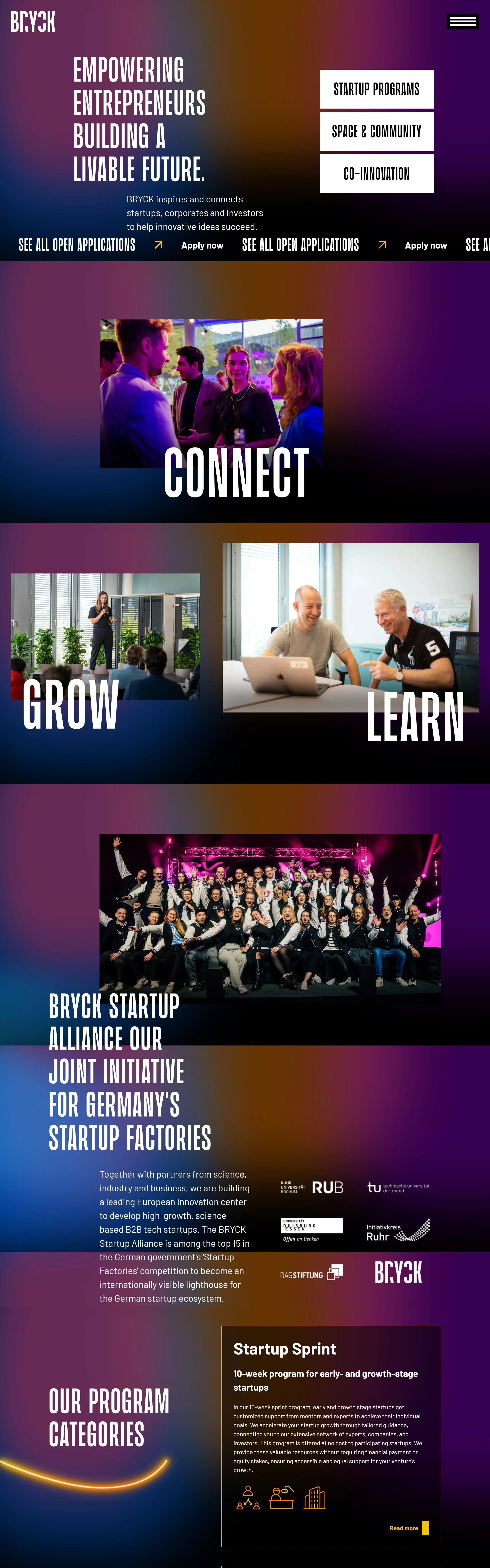 BRYCK is an innovation hub and future factory in Essen that focuses on collaboration to empower entrepreneurs and connect startups, corporates, and investors for the success of innovative ideas.