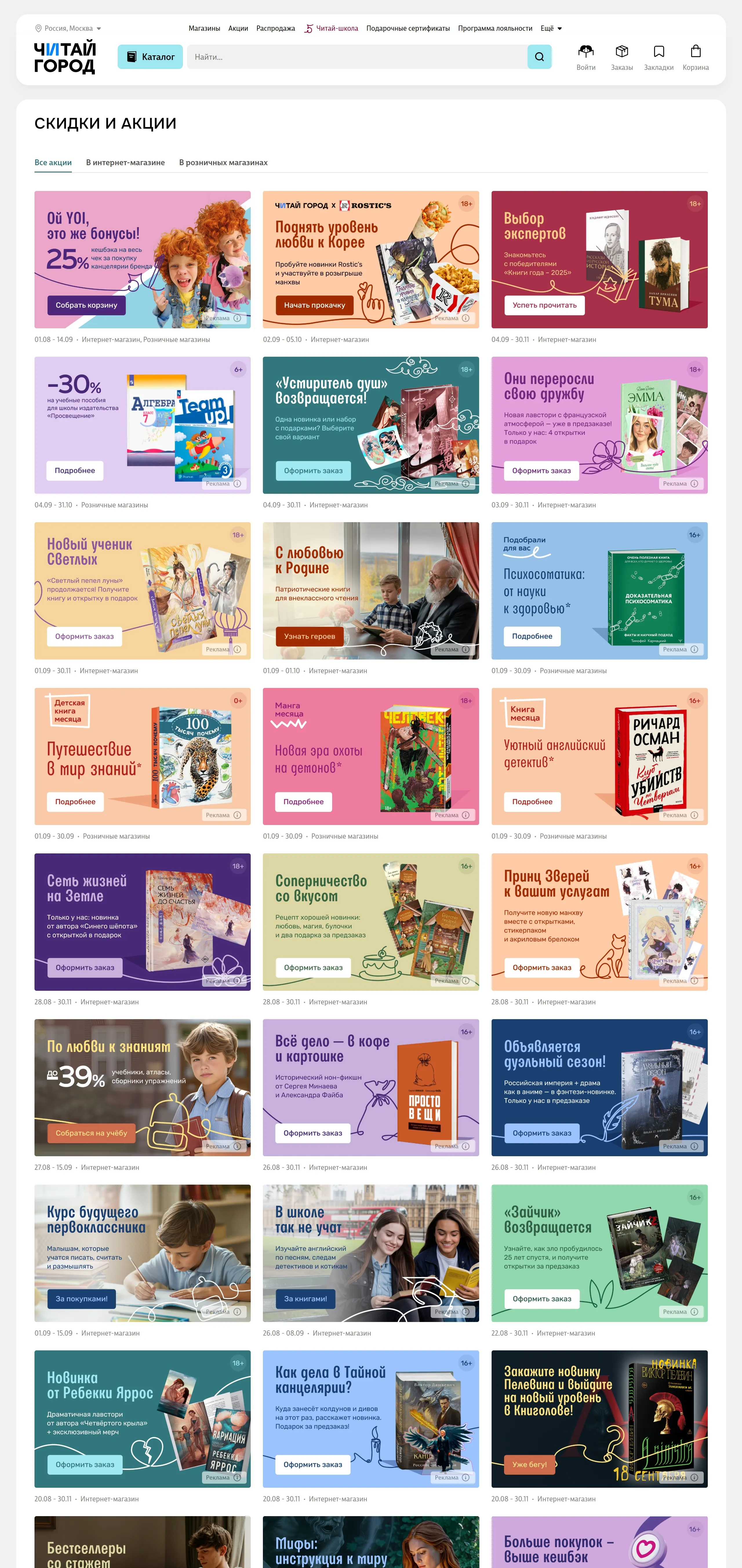 Каталог Читай-город, тематика — Интернет-магазин, цвета — Белый, Серый, стиль — Корпоративный, типографика — Без засечек, Декоративные