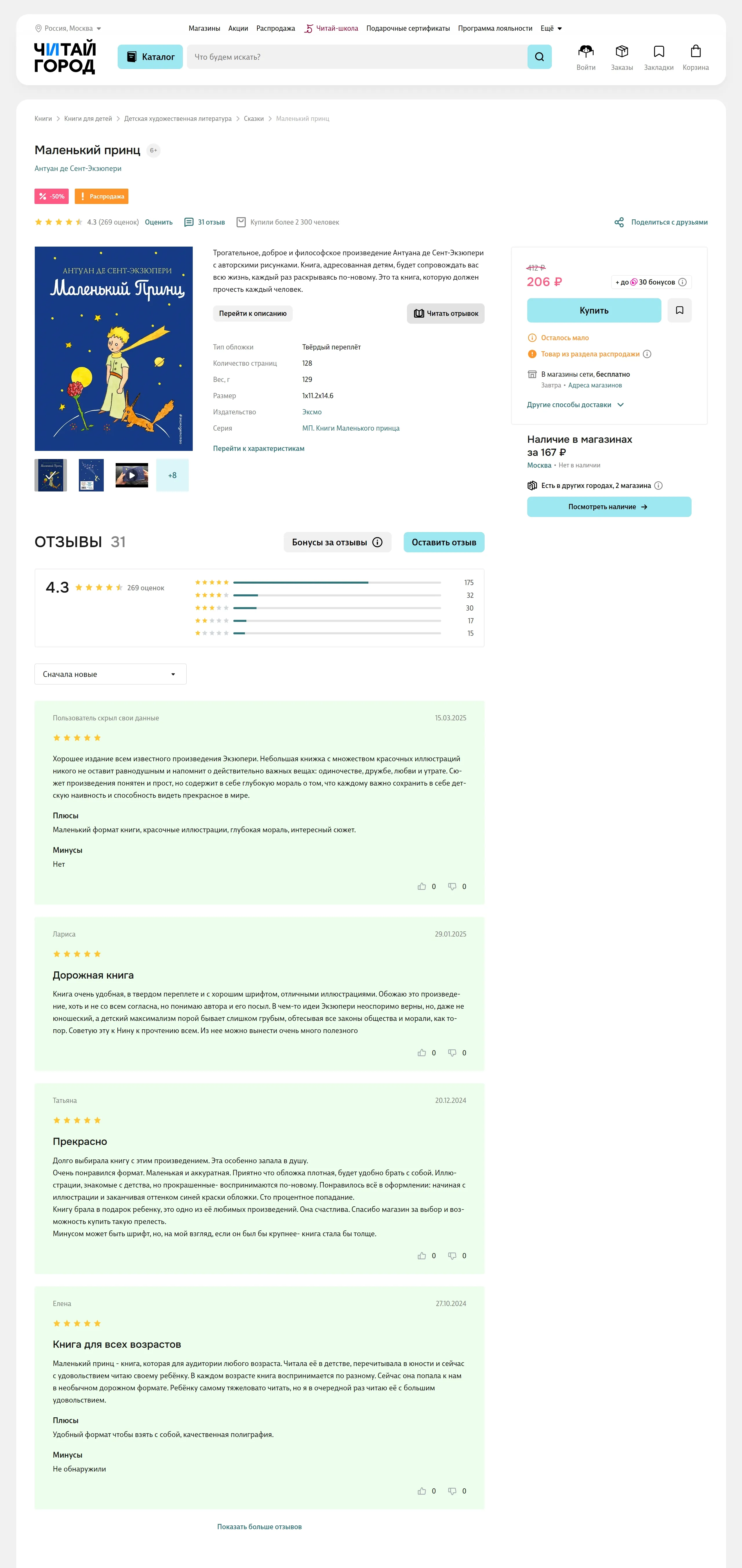Продукт Читай-город, тематика — Интернет-магазин, цвета — Белый, стиль — Корпоративный, типографика — Без засечек