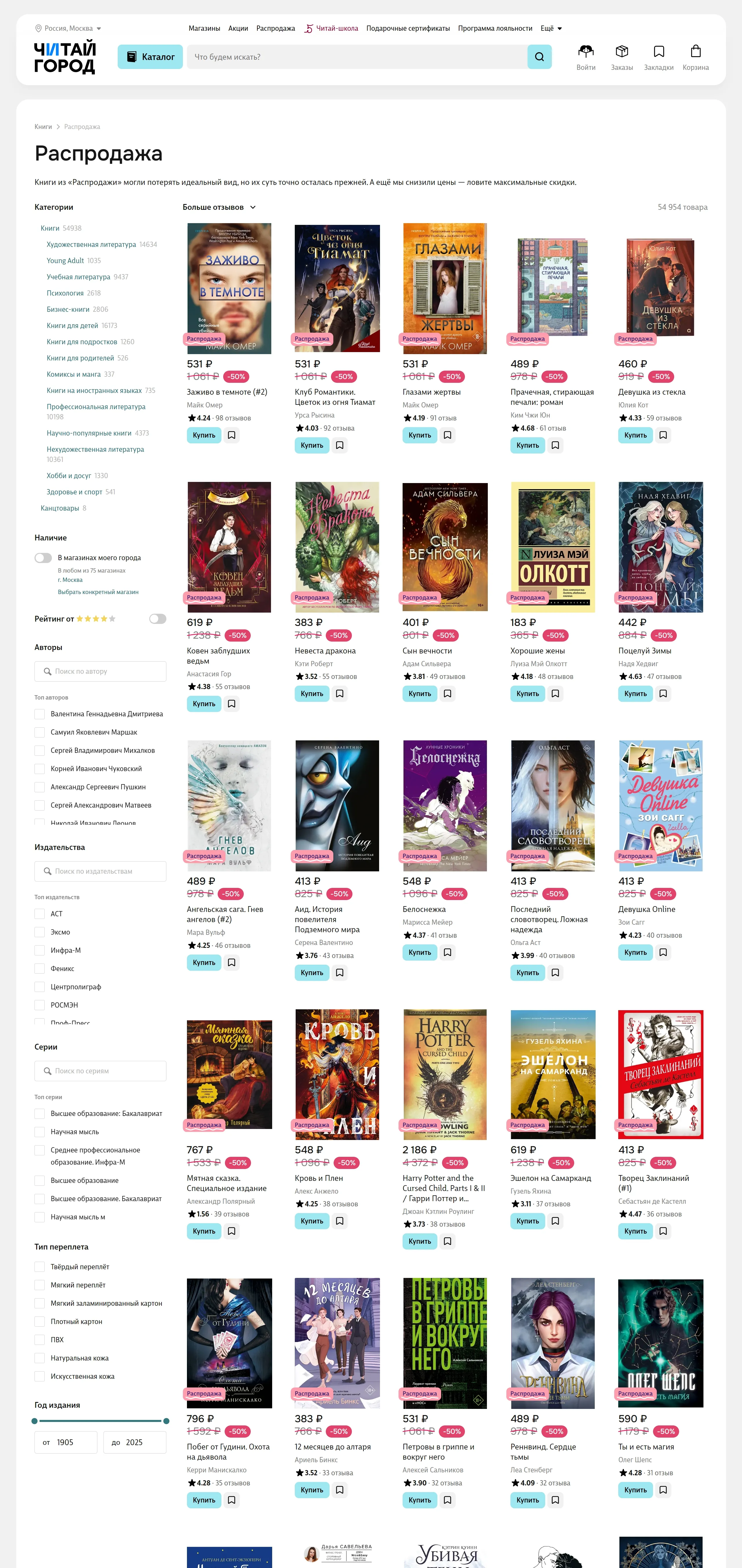 Главная Читай-город, тематика — Интернет-магазин, цвета — Белый, Серый, стиль — Корпоративный, типографика — Без засечек