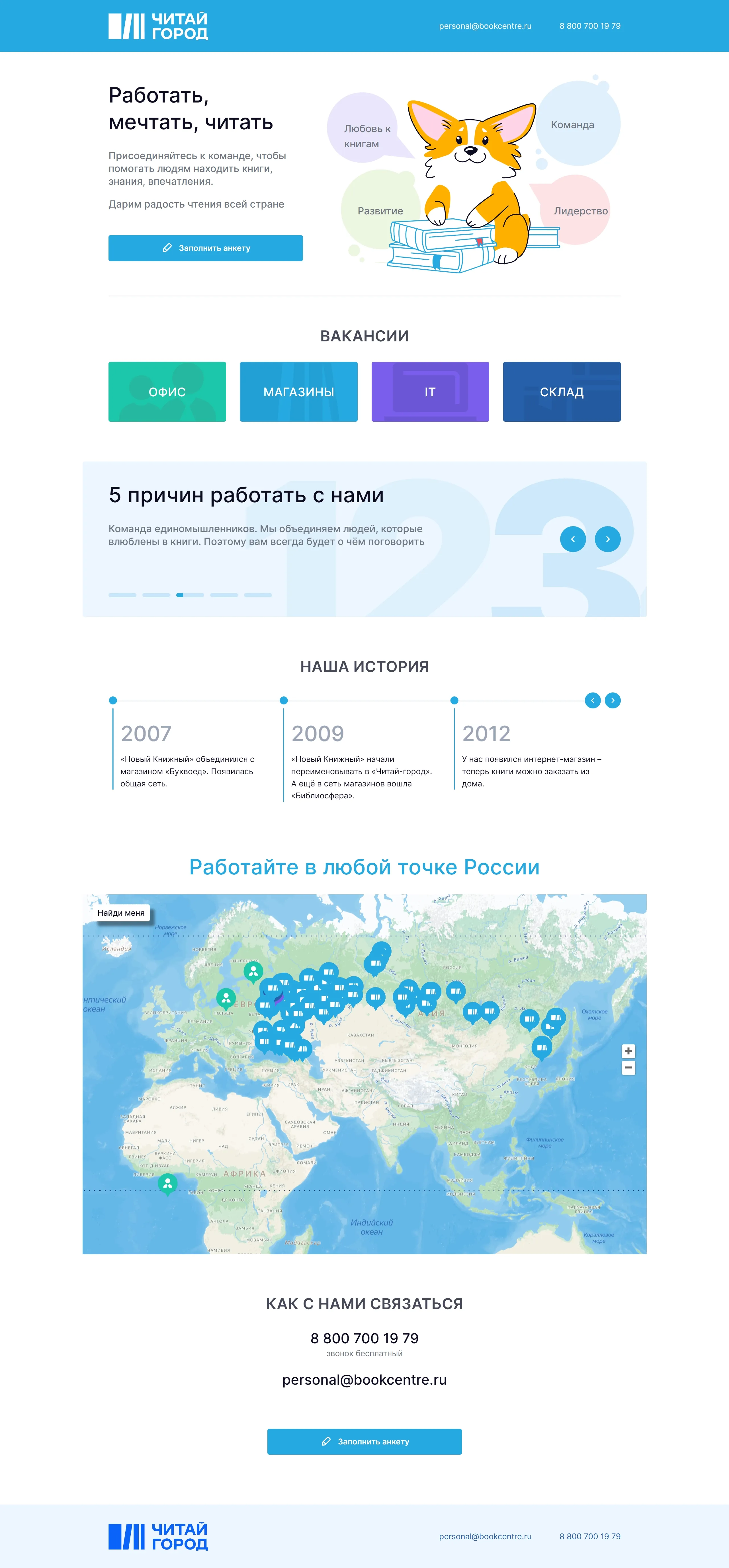 Страница карьеры Читай-город, тематика — Розничная торговля, цвета — Белый, стиль — Корпоративный, типографика — Без засечек