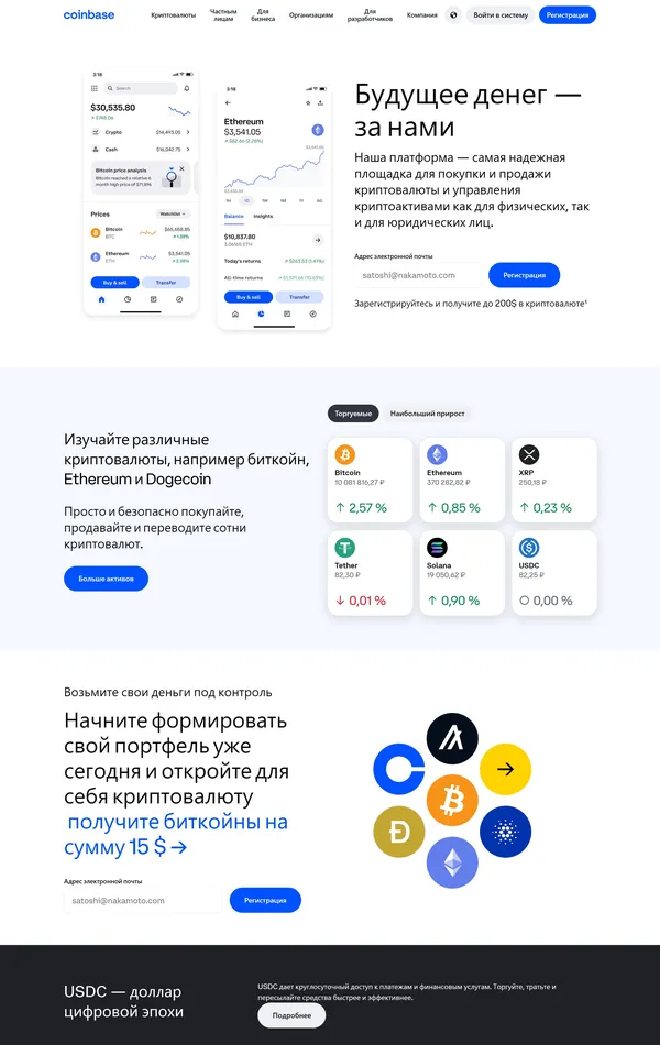 Популярная платформа для обмена криптовалют, предлагающая пользователям инструмент для покупки, продажи и хранения цифровых валют. Coinbase предоставляет безопасные решения для инвесторов и трейдеров, желающих войти в рынок криптоактивов.