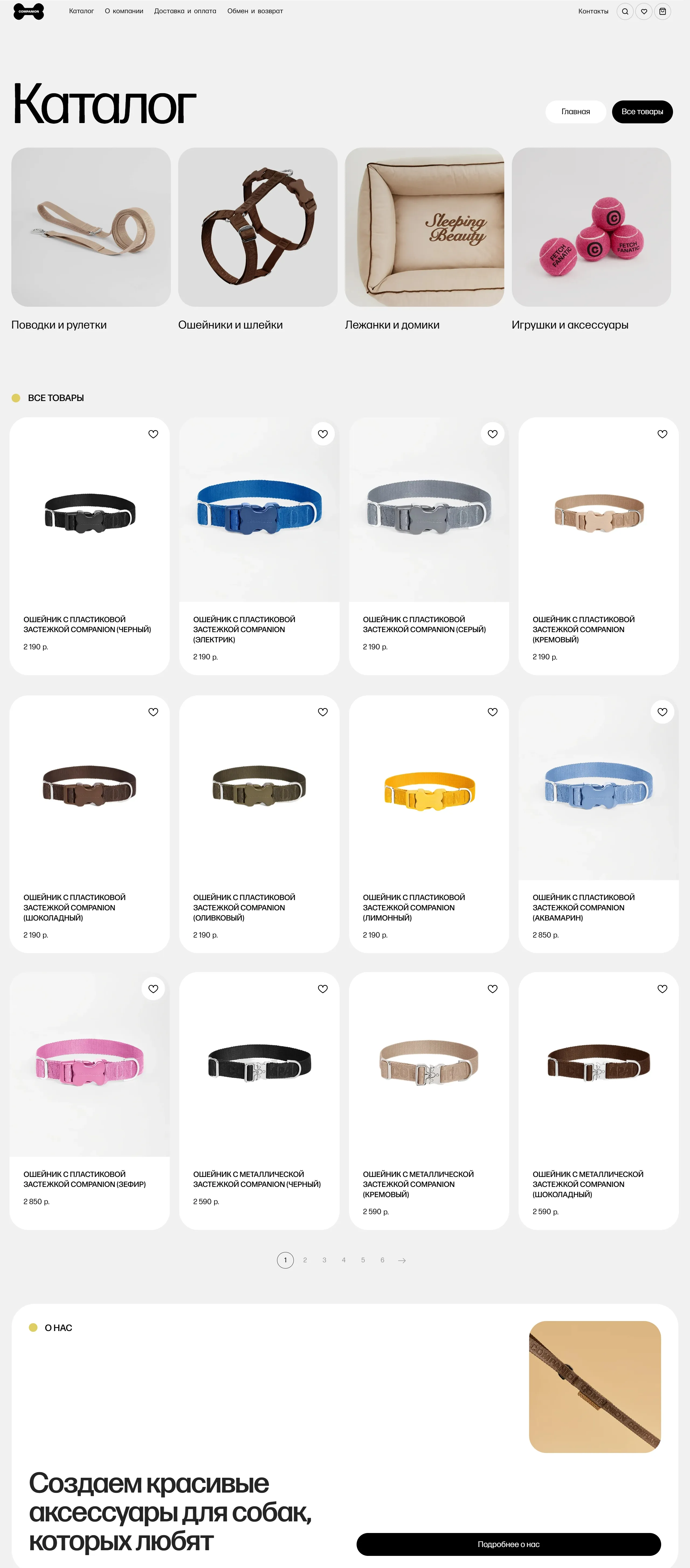 Компания предлагает стильные аксессуары для собак, подчеркивающие индивидуальность питомца и его владельца.