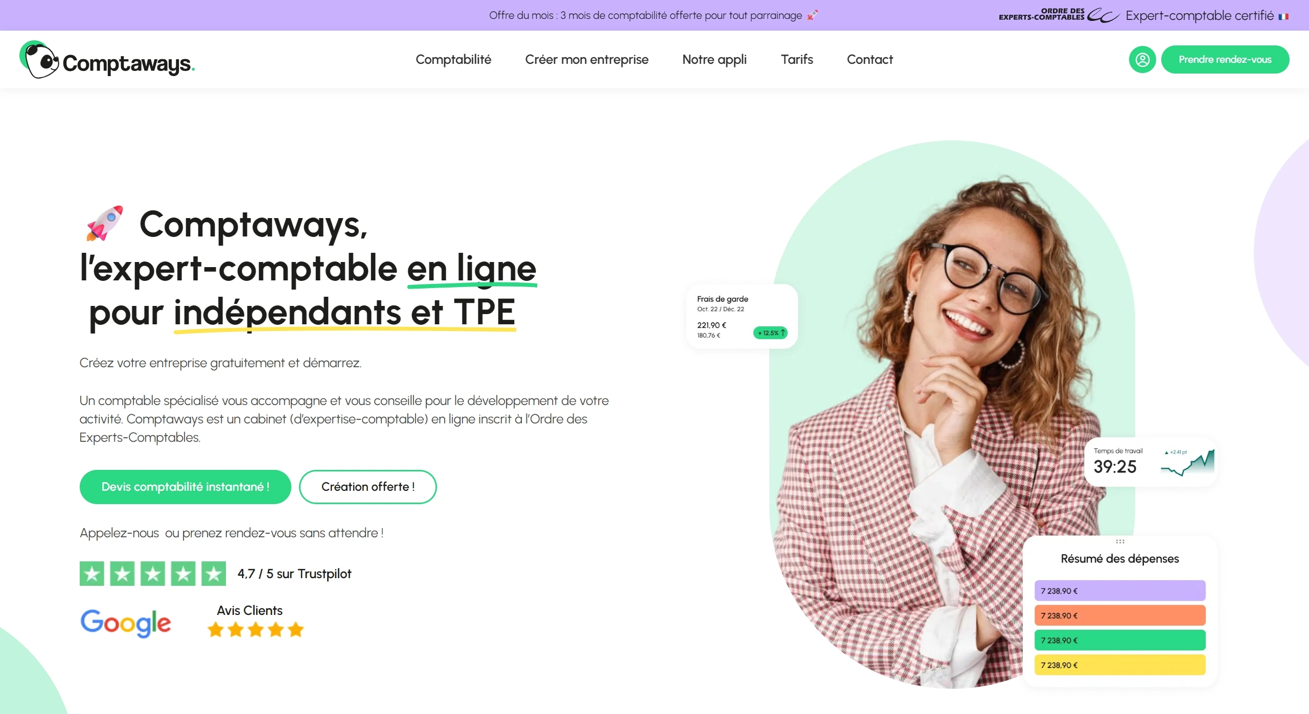 Comptaways est un cabinet d'expertise-comptable en ligne qui accompagne et conseille les indépendants et TPE dans le développement de leur activité. Il propose une application professionnelle pour faciliter la gestion comptable.