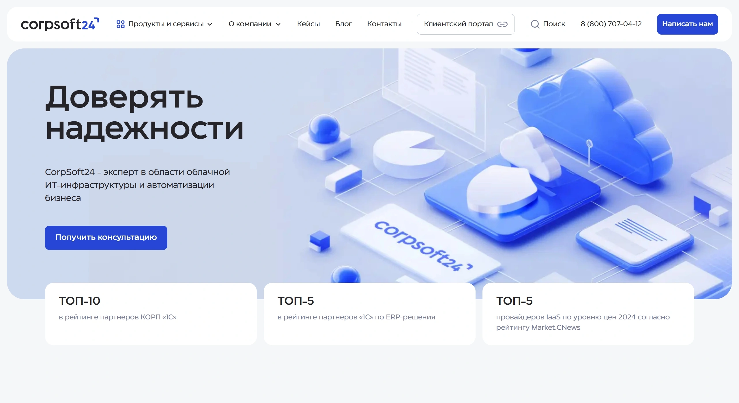 Компания предлагает комплексные облачные решения для разных категорий бизнеса с широким спектром услуг и поддержкой 24/7. Услуги включают аренду облачных серверов, внедрение 1С и бизнес-приложения в формате SaaS.