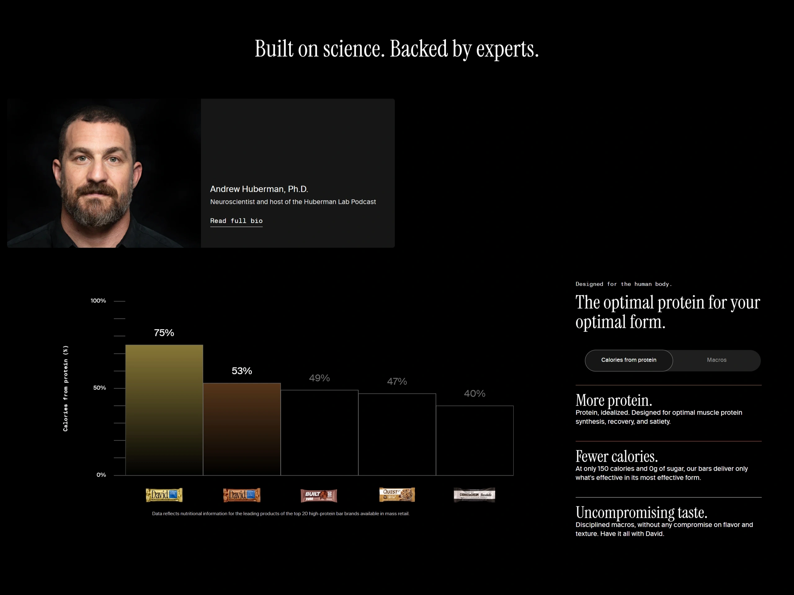 David Protein offers high-protein snacks with a focus on fewer calories and no sugar, helping customers build muscle and reduce body fat. Their products are third-party tested for protein content and purity.