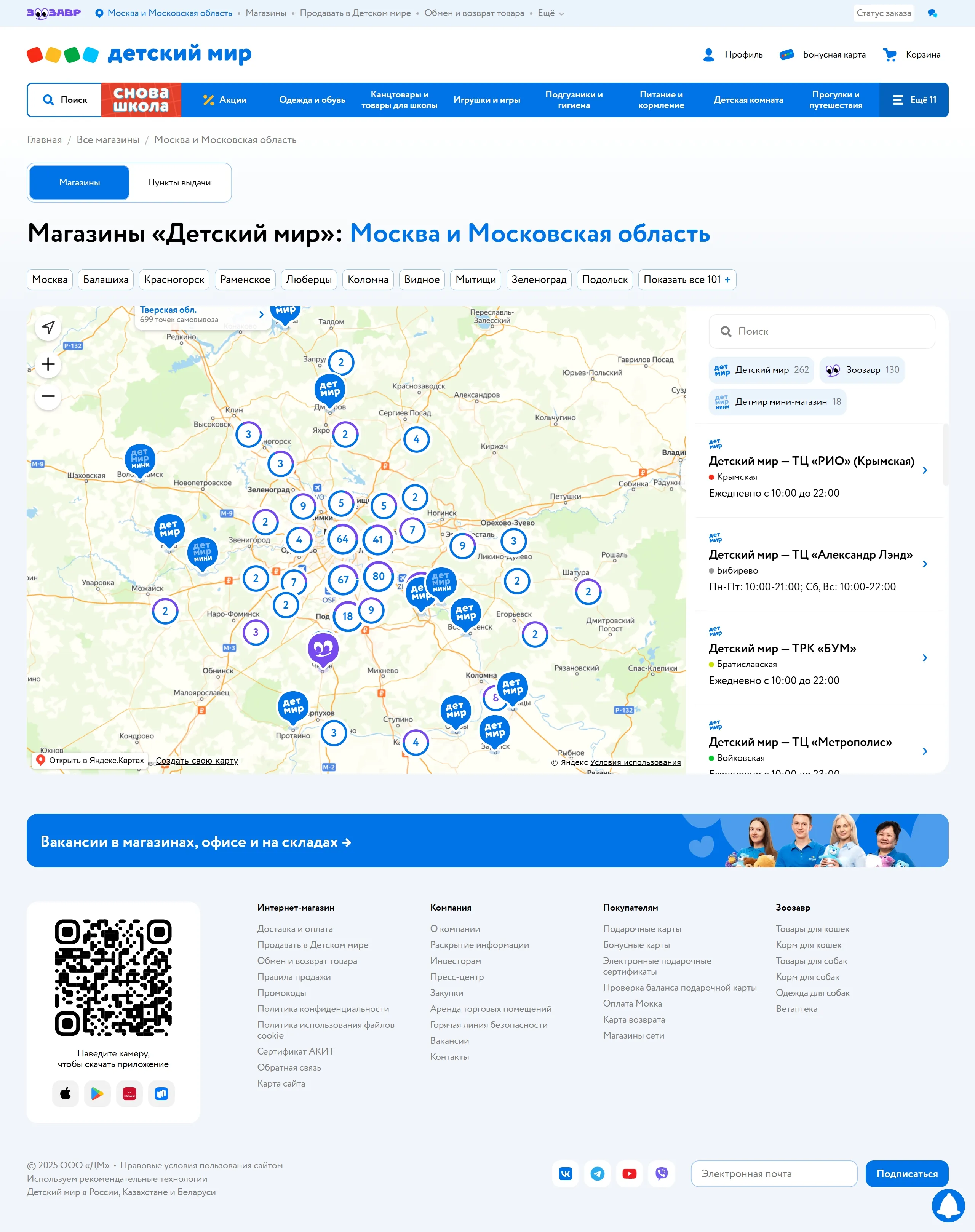 Секция «Контакты» с сайта https://www.detmir.ru/, тематика — Интернет-магазин, Розничная торговля, цвета — Белый, стиль — Корпоративный, типографика — Без засечек