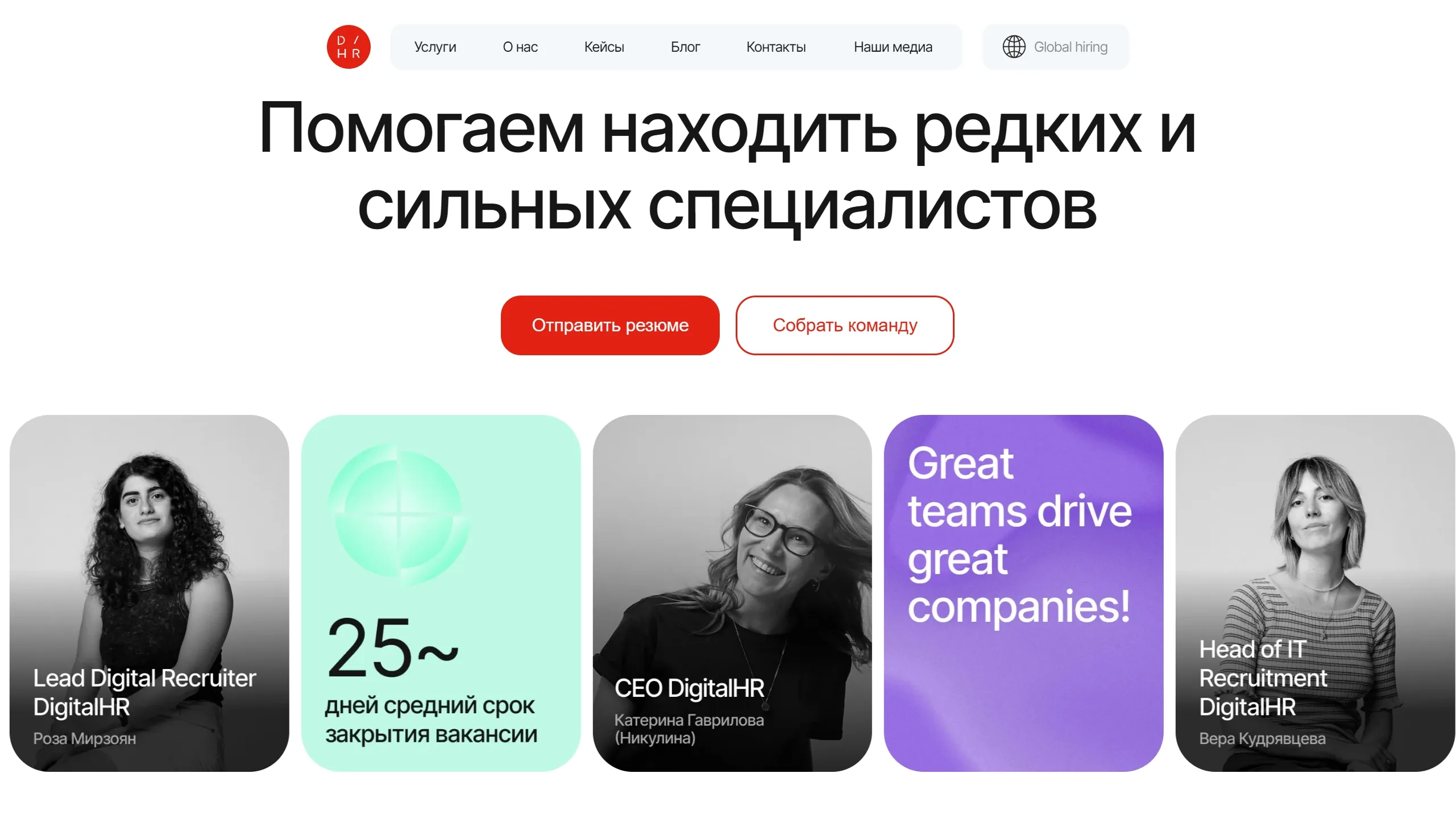 Компания занимается поиском редких и квалифицированных специалистов в различных областях, включая разработку, дизайн и маркетинг, а также предоставляет услуги по HR-консалтингу и анализу кадрового рынка.