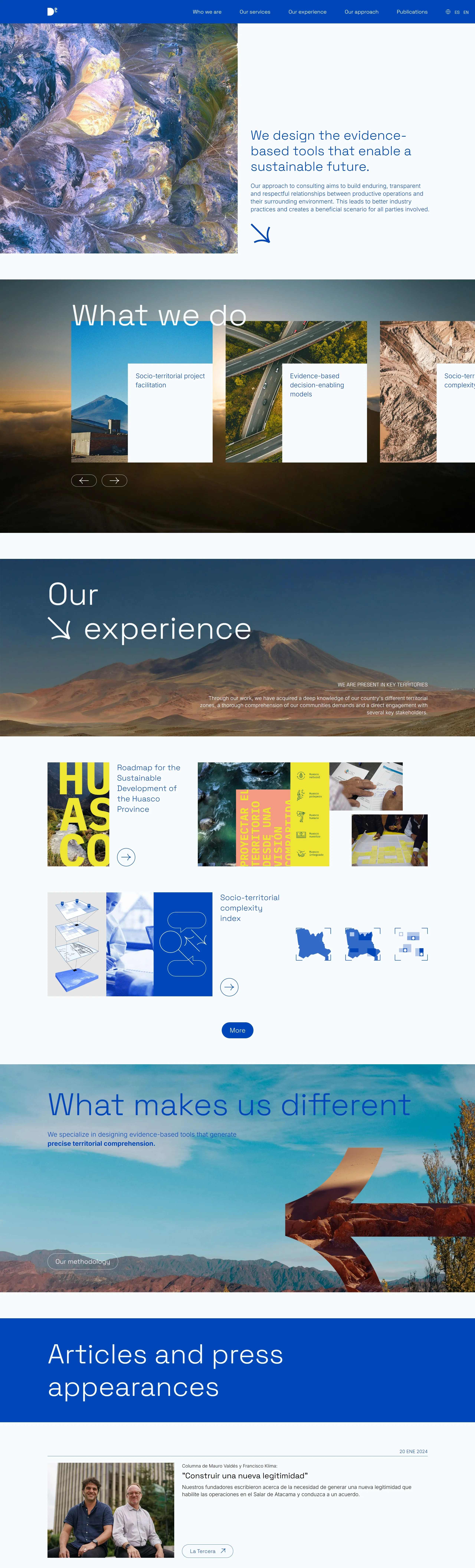 Мы - консалтинговая компания, которая способствует процессам территориальной интеграции с помощью науки о данных и инструментов, основанных на фактических данных. Наша цель - построение устойчивого будущего через создание инструментов, основанных на доказательствах.