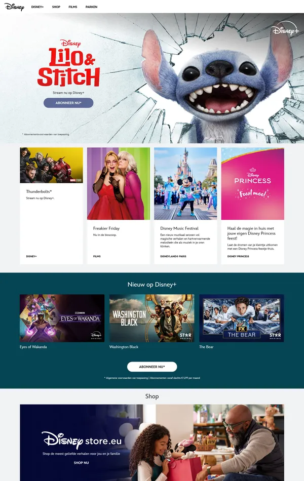Многостраничный сайт Disney, тематика — Развлечения, цвета — Белый, Черный, стиль — Корпоративный, типографика — Без засечек