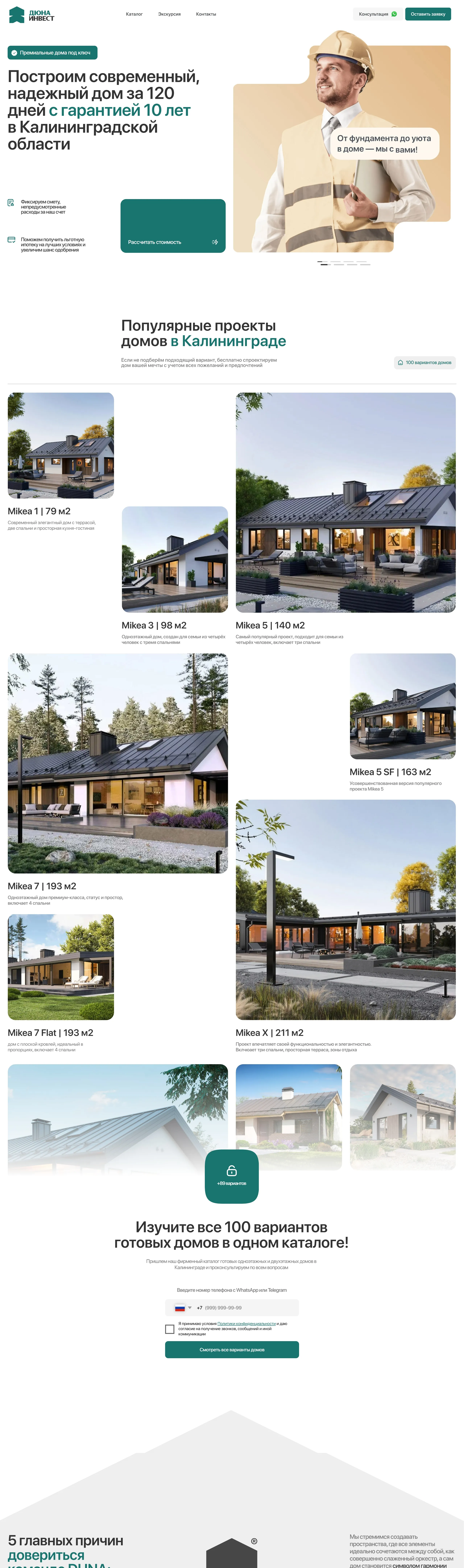 Строительная компания, специализирующаяся на возведении частных домов в Калининградской области с гарантией 10 лет и возможностью фиксирования сметы.