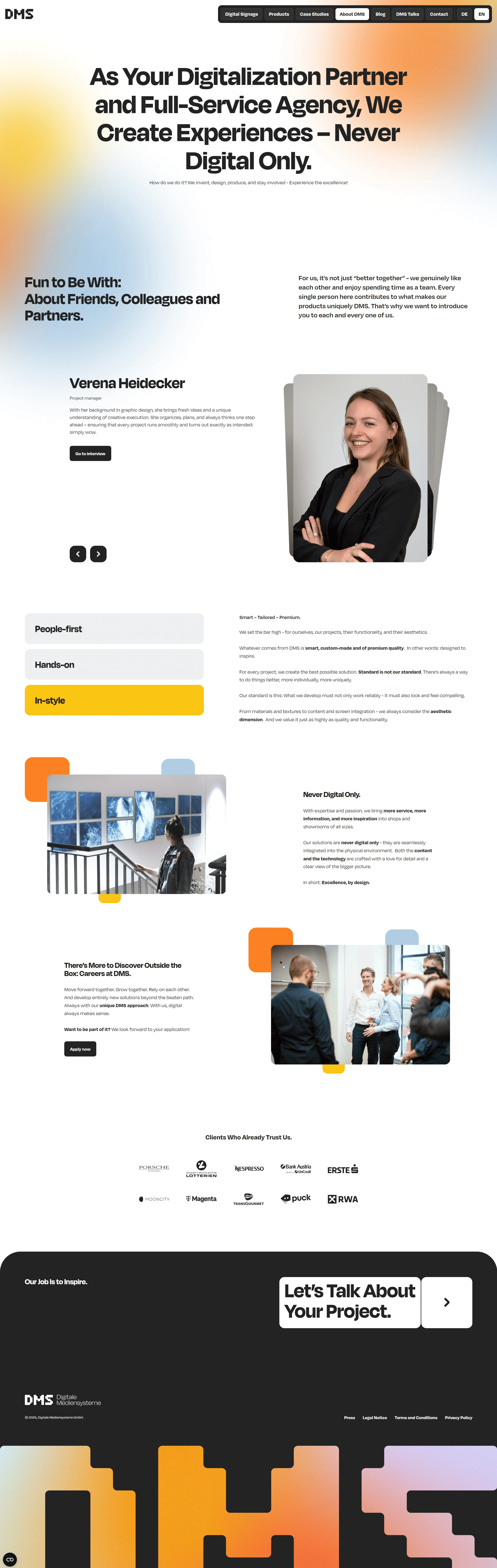 DMS specializes in digital experiences for retail, offering services like digital signage, omnichannel solutions, and creative content. They focus on building customized digital experiences that enhance physical spaces for stores and brands.
