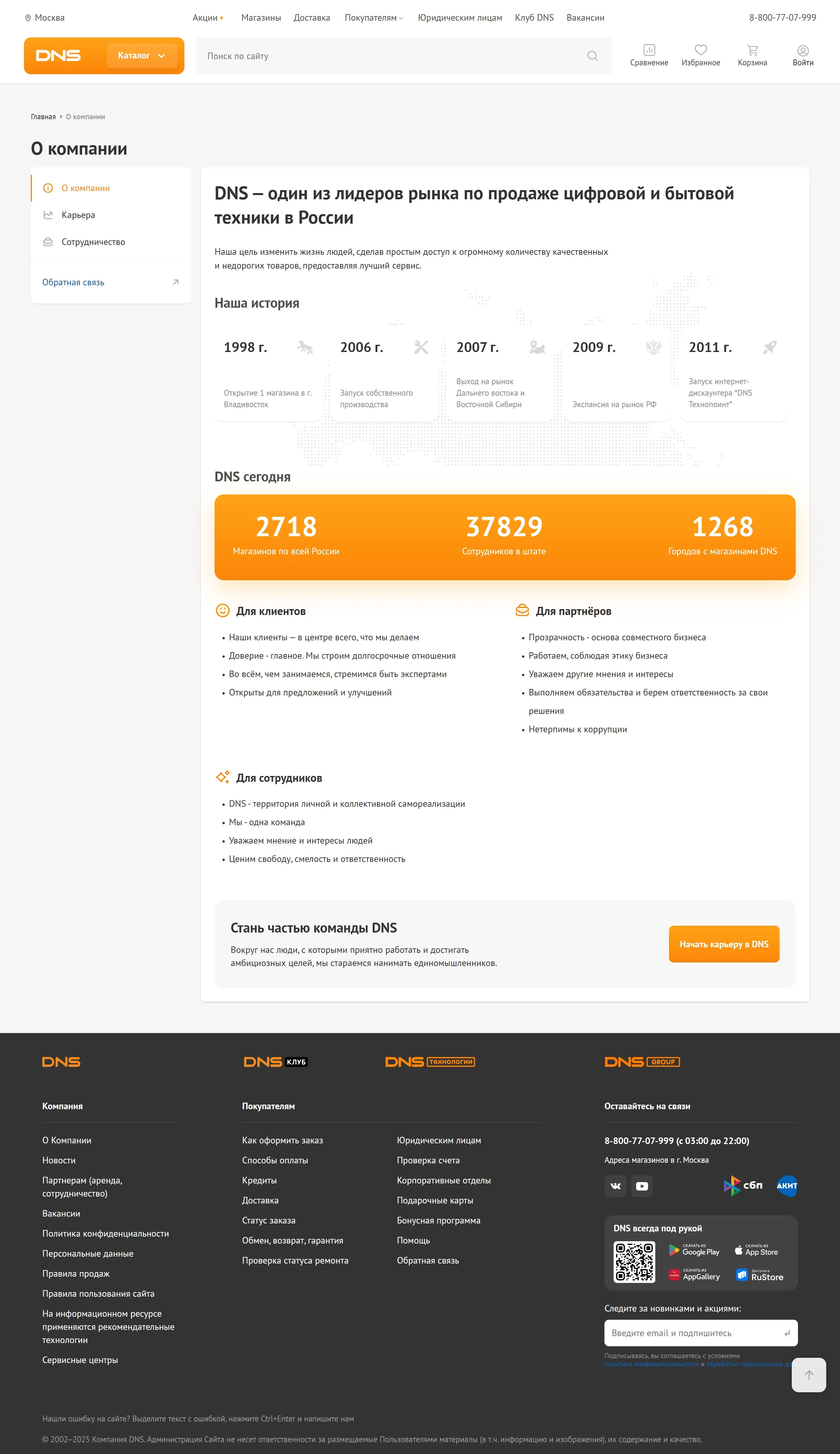 Секция «Услуги» с сайта https://www.dns-shop.ru/, тематика — Интернет-магазин, цвета — Белый, Черный, стиль — Корпоративный, типографика — Без засечек