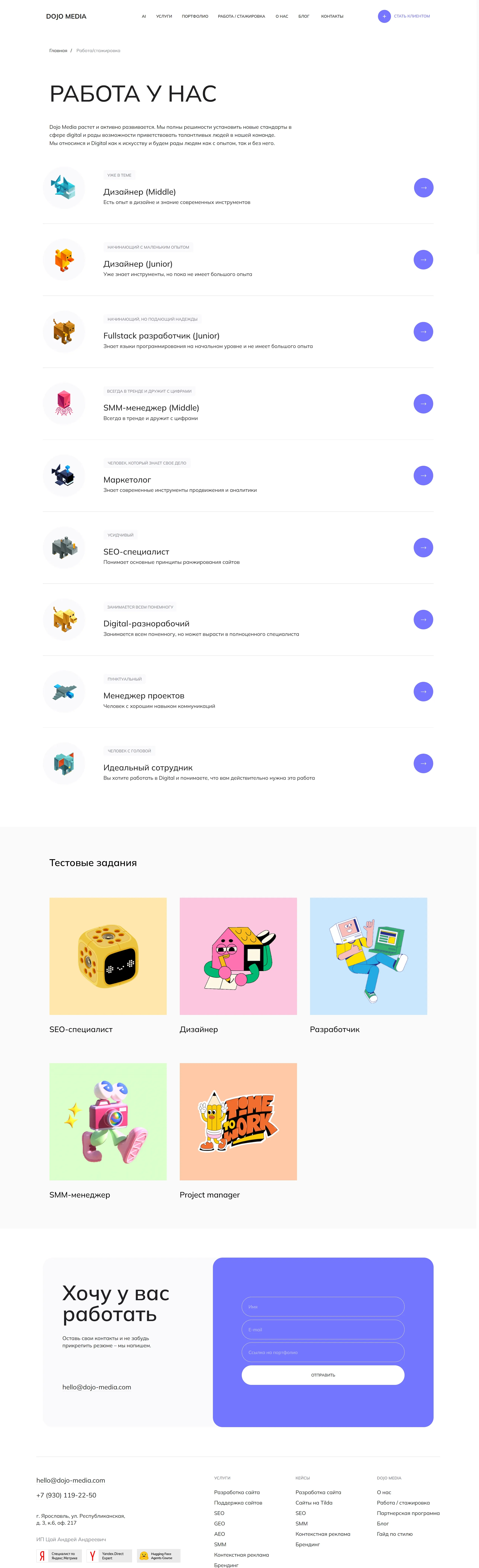 Digital-агентство полного цикла, предлагающее комплексный интернет-маркетинг, включая контекстную рекламу, SEO и SMM, а также разработку и поддержку сайтов и веб-дизайна.
