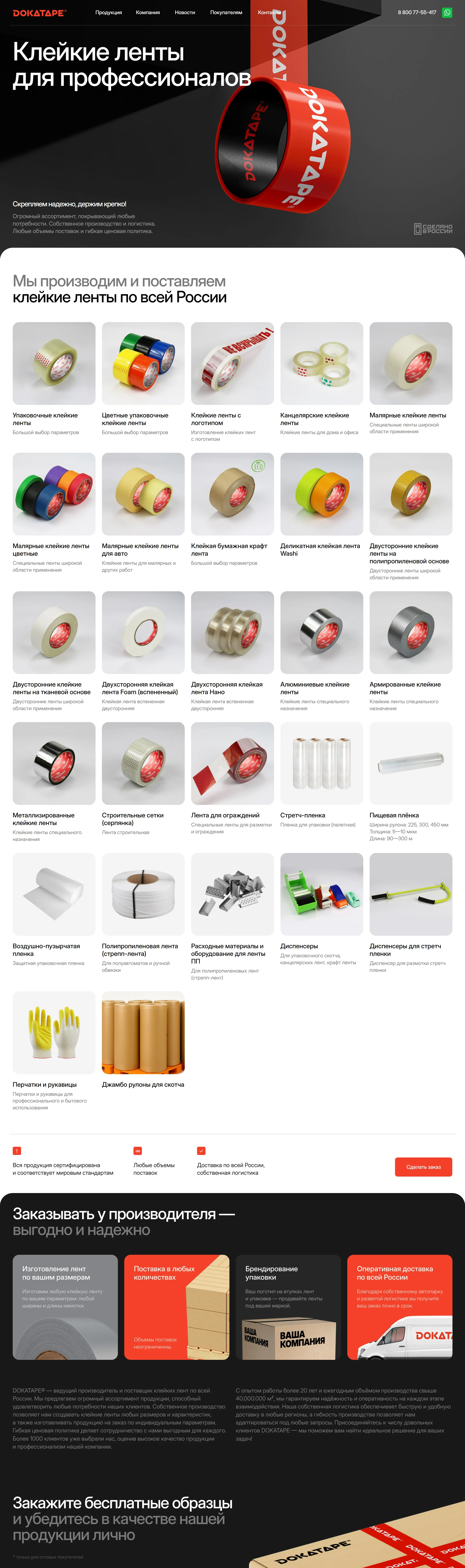 Ведущий производитель и поставщик клейких лент в России, предлагающий огромный ассортимент продукции, который удовлетворяет любые потребности клиентов, с собственным производством и логистикой.