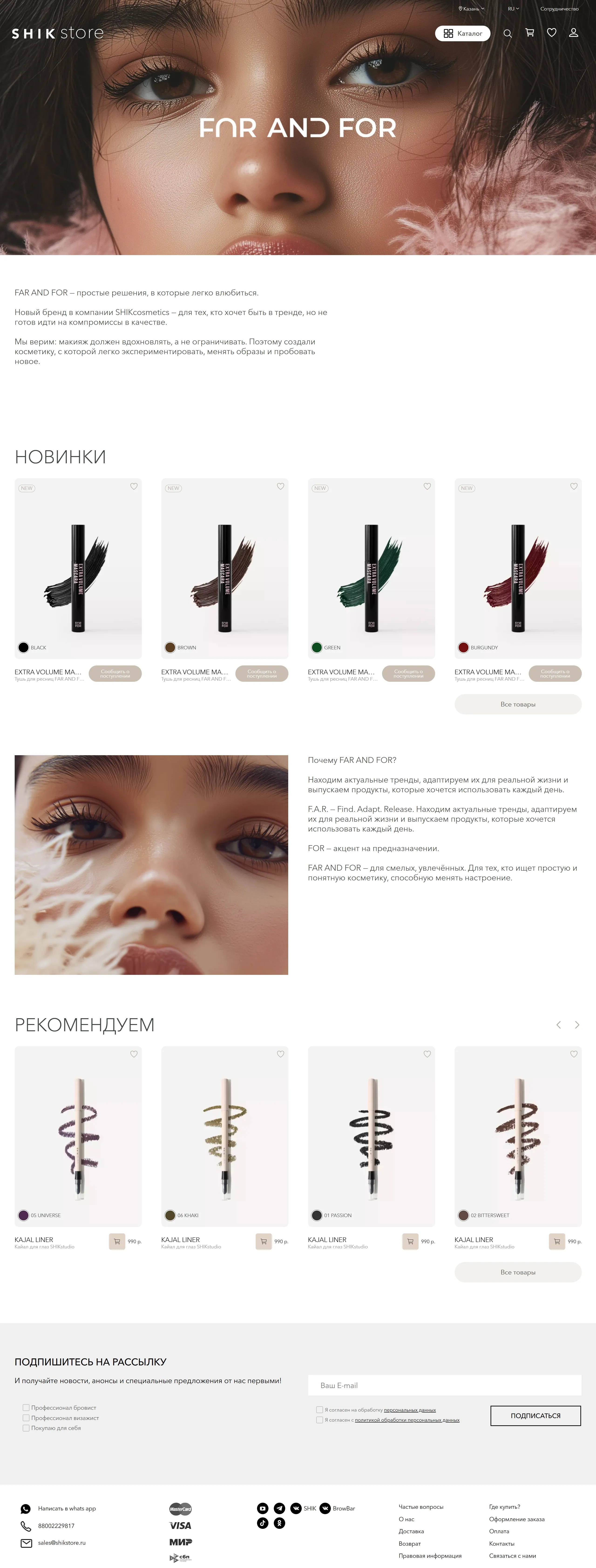 Секция «Первый экран» с сайта https://shikstore.ru/, тематика — Красота, цвета — Коричневый, стиль — Корпоративный, Минимализм, типографика — Без засечек