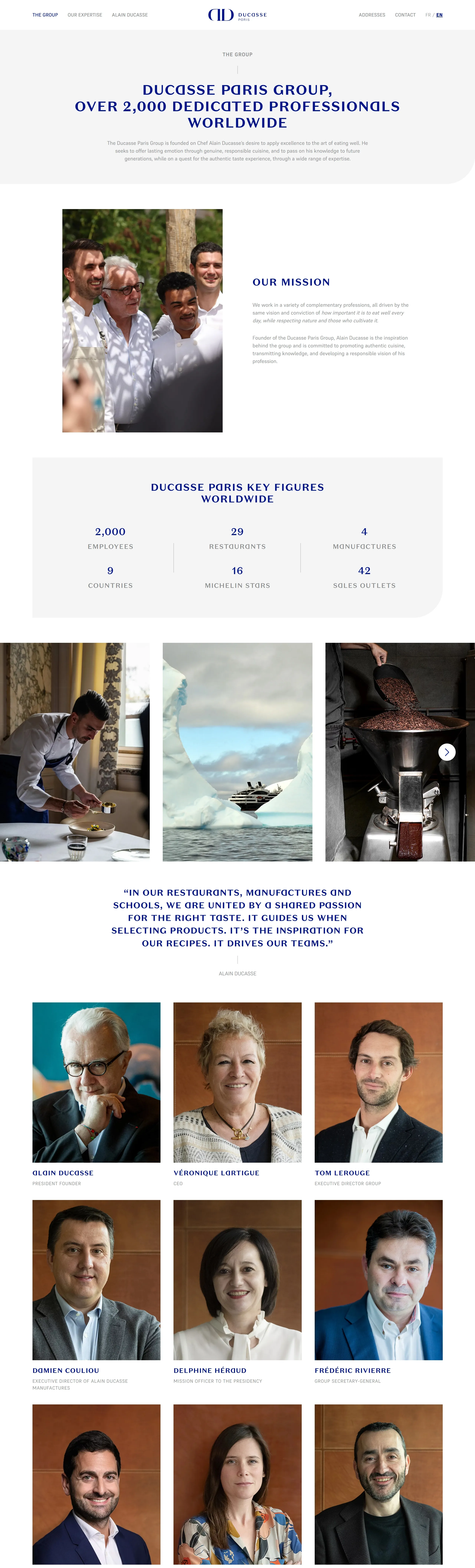 Группа Ducasse Paris, основанная шеф-поваром Аленом Дюкассом, олицетворяет кулинарное мастерство и стремится предоставить подлинный опыт вкуса через свою высококачественную кухню и гастрономическое образование.