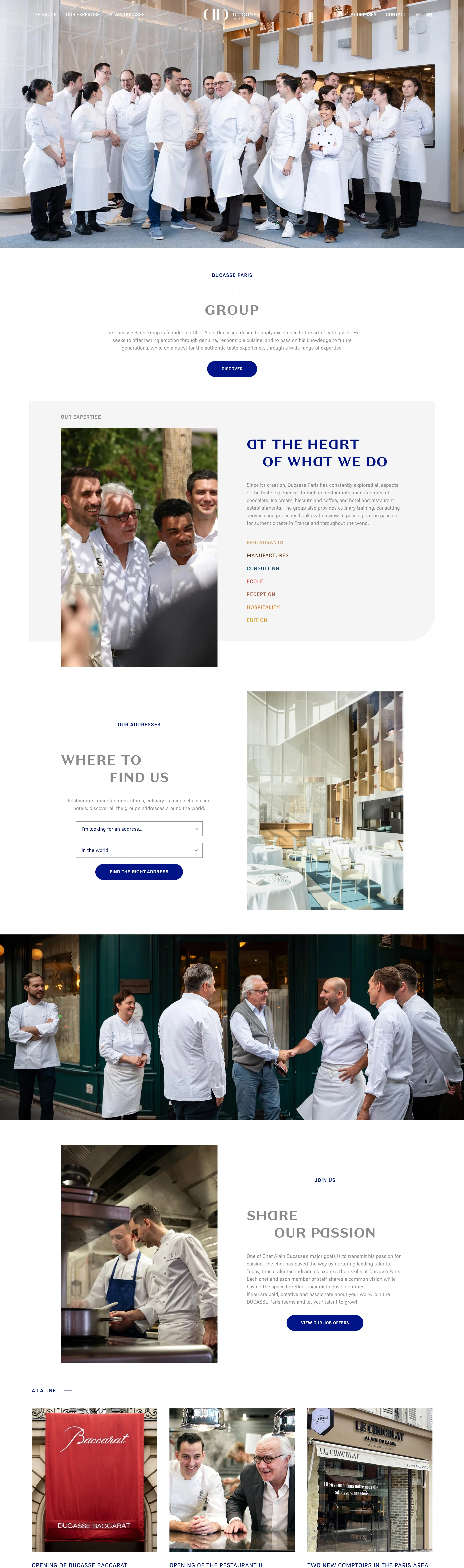 Группа Ducasse Paris, основанная шеф-поваром Аленом Дюкассом, воплощает кулинарное превосходство и стремится предложить подлинный и ответственный опыт в области гастрономии и искусства жизни.