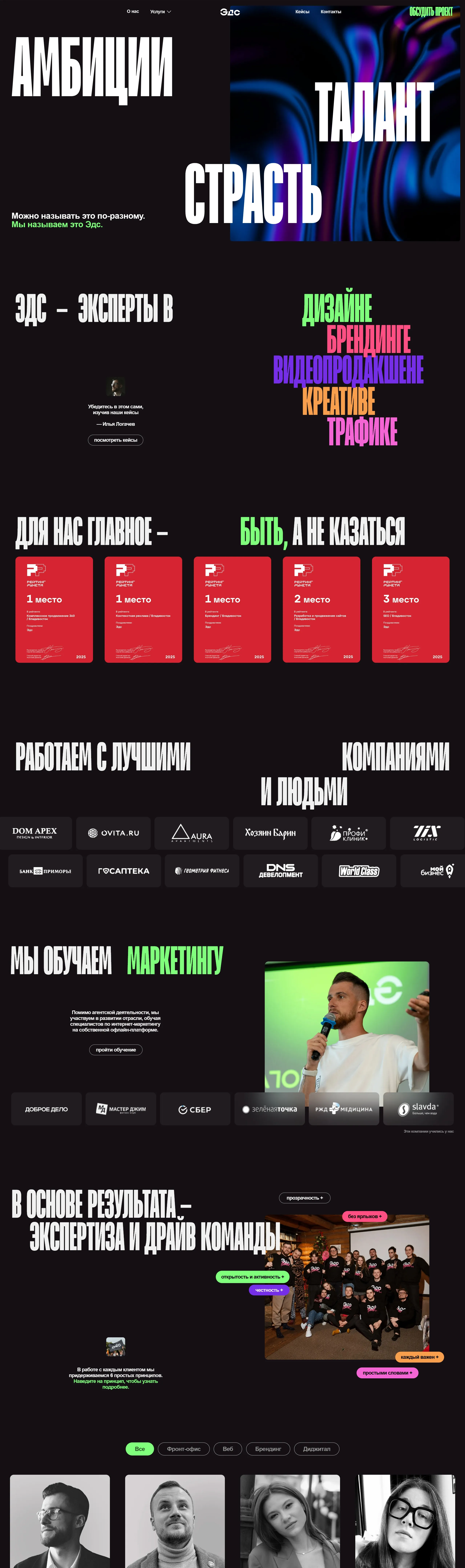 ЭДС — маркетинговое агентство полного цикла во Владивостоке, предлагающее широкий спектр услуг digital-маркетинга, включая стратегии продвижения, нейминг и создание сайтов.