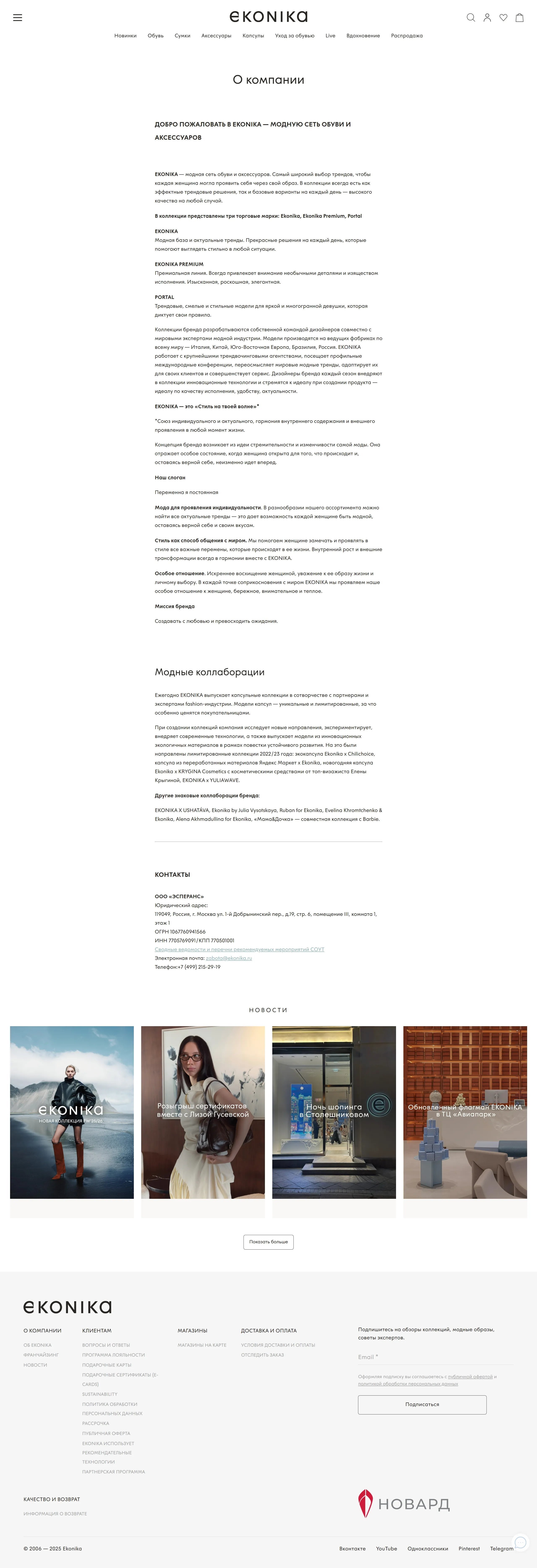 Страница о компании EKONIKA, тематика — Интернет-магазин, Одежда, цвета — Белый, стиль — Классический, Корпоративный, типографика — Без засечек