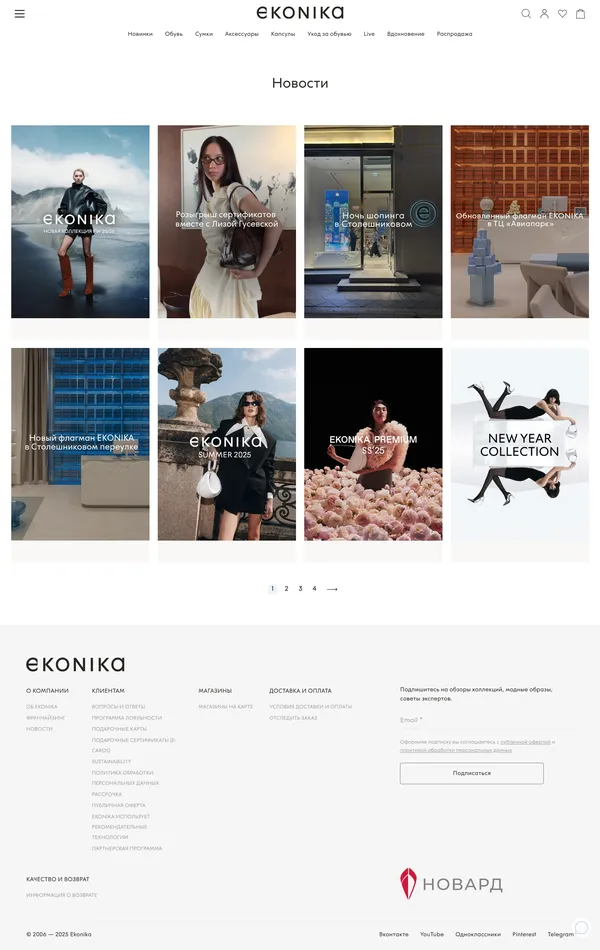 Секция «Новости» с сайта http://ekonika.ru, тематика — Интернет-магазин, Одежда, цвета — Белый, Серый, стиль — Корпоративный, Минимализм, типографика — Без засечек