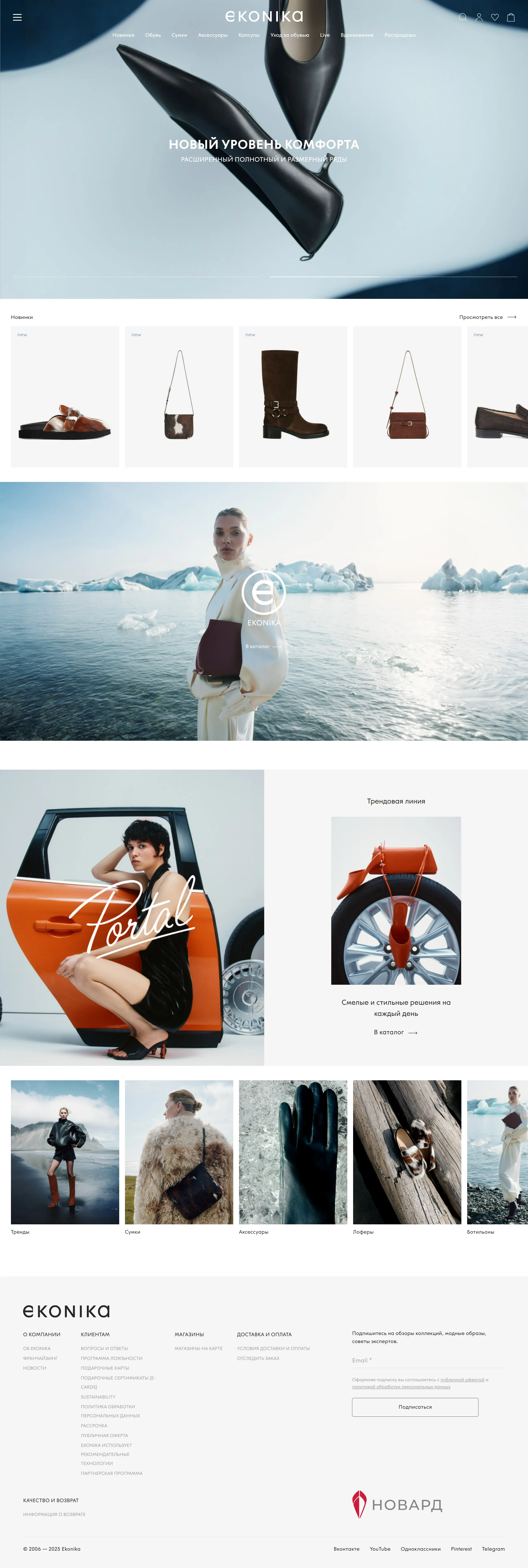 Секция «Первый экран» с сайта http://ekonika.ru, тематика — Интернет-магазин, Одежда, цвета — Черный, Серый, стиль — Корпоративный, Минимализм, типографика — Без засечек
