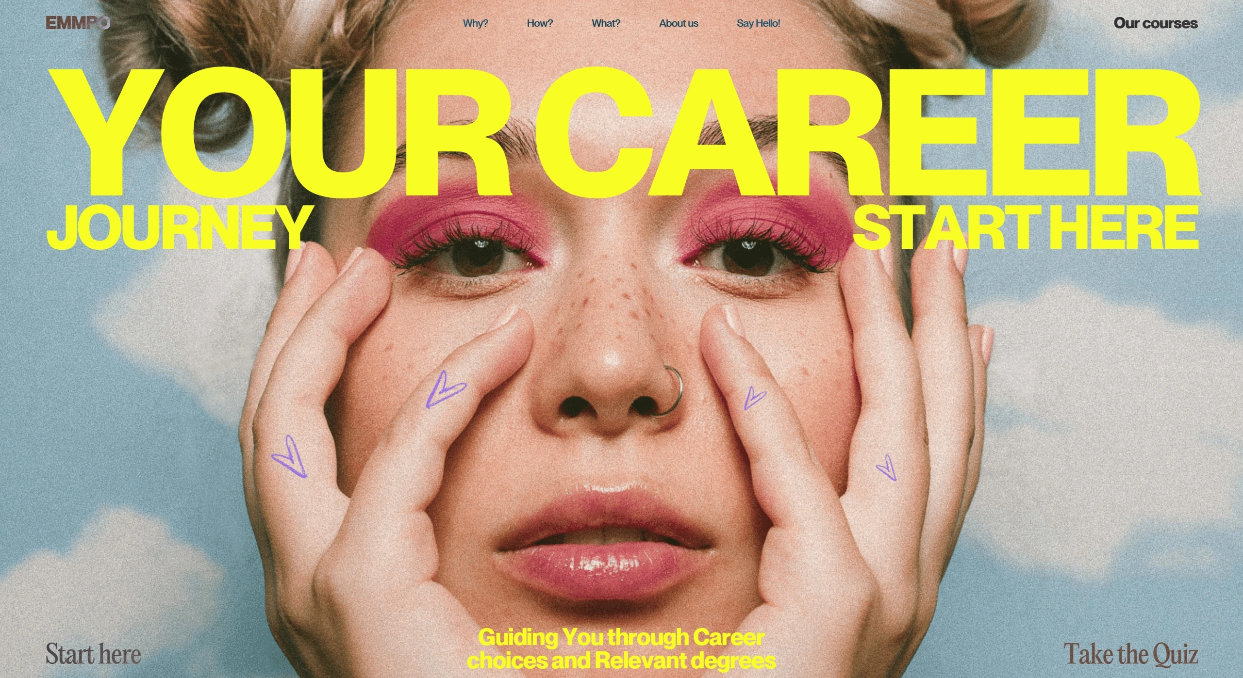 Emmpo offers career guidance by helping individuals explore careers related to creativity, sustainability, and technology through a personalized quiz and recommendations. The platform focuses on matching personalities with suitable career paths and relevant degree options.
